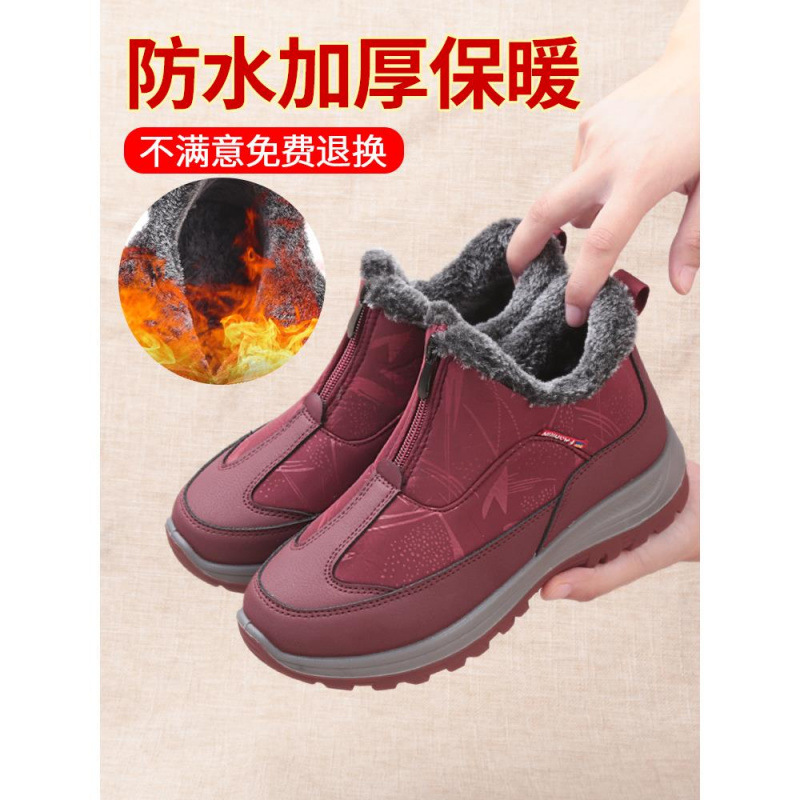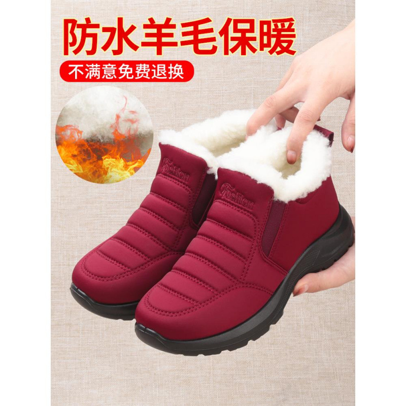 冬の女性用の古い北京綿靴、ベルベットで厚く、暖かく、滑り止め、防水、中高年向けの布靴、母親の綿のブーツ、おばあちゃん