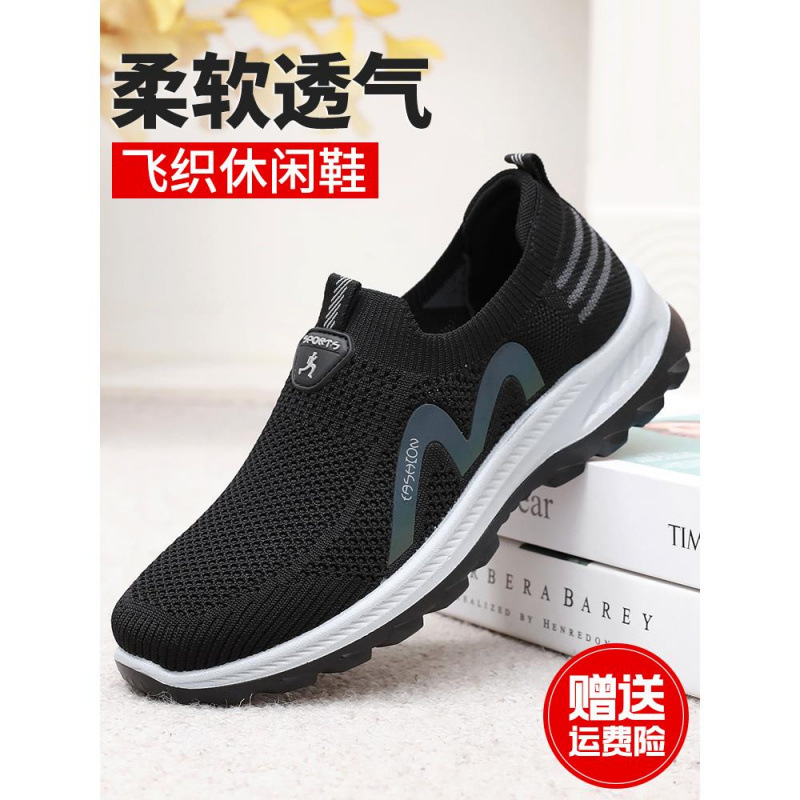 古い北京布靴メンズ春と秋の快適な高齢者の靴滑り止め耐摩耗性ソフトソール軽量お父さん靴中高年カジュアルシューズ