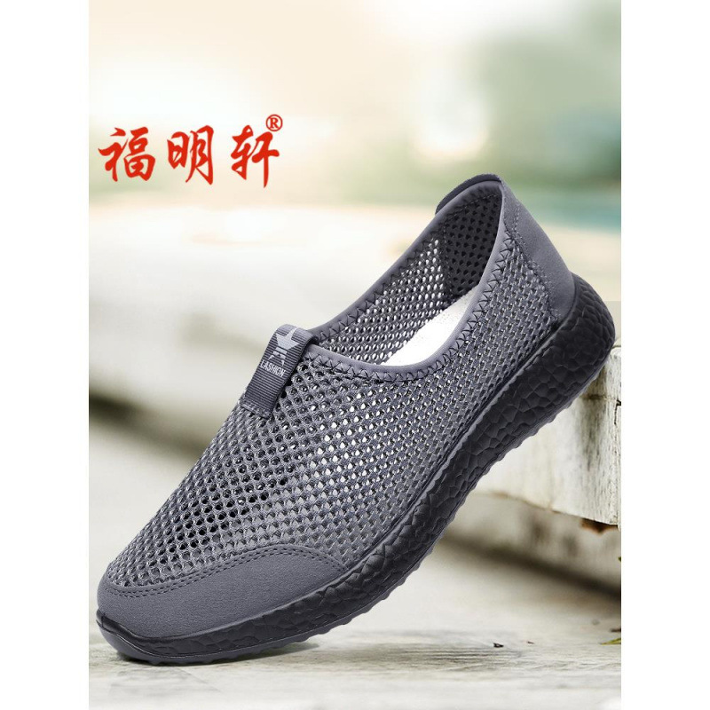 古い北京布靴メンズ大型メッシュ通気性夏薄型中空メッシュシューズスリッポンスポーツカジュアルシューズお父さん靴