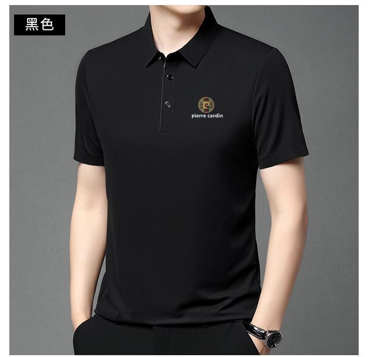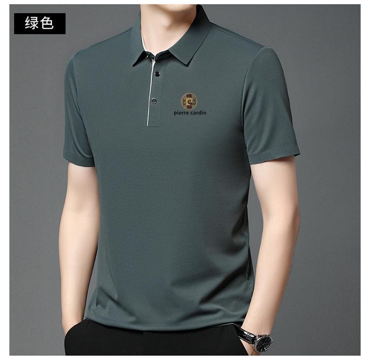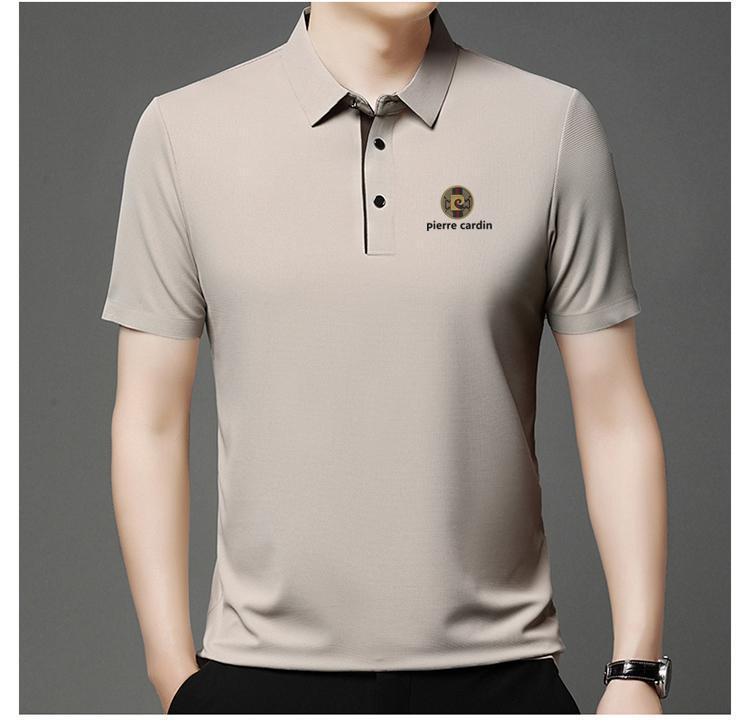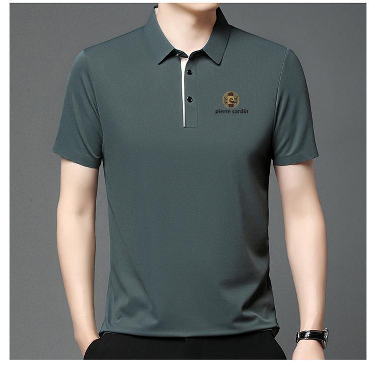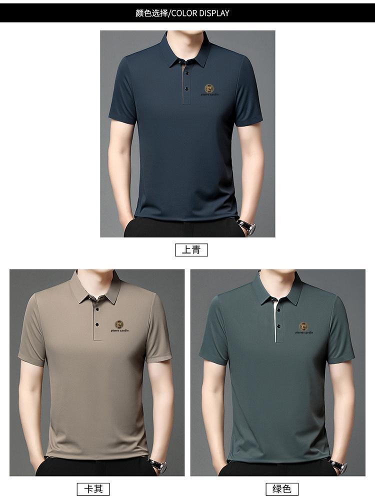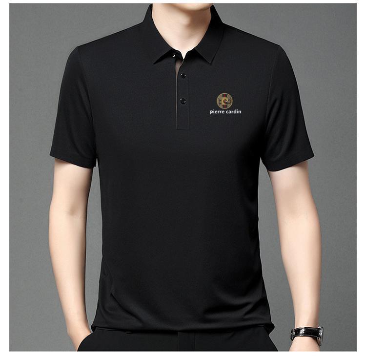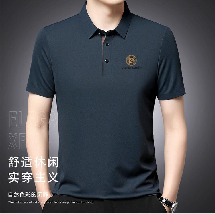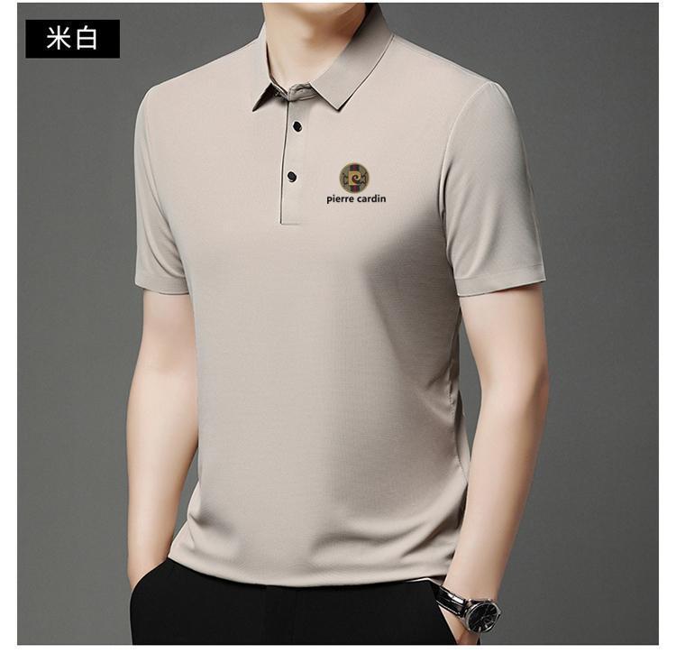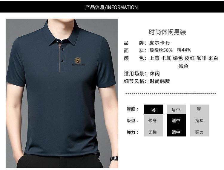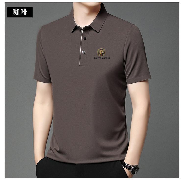 本物のピエールカルダン シルク半袖ポロシャツ 夏用 ノーアイロン 薄手 ラペルTシャツ メンズ ゆったりタイプ