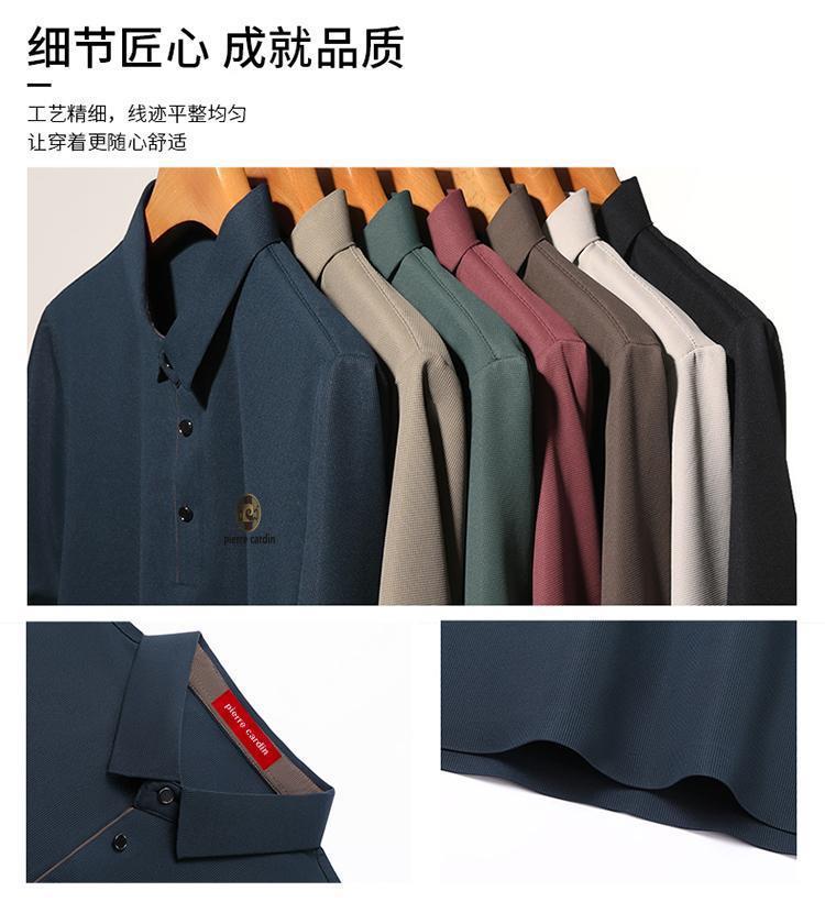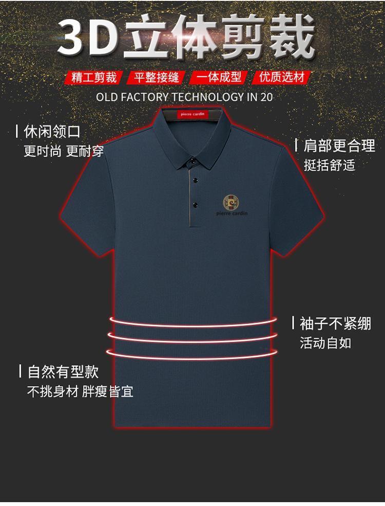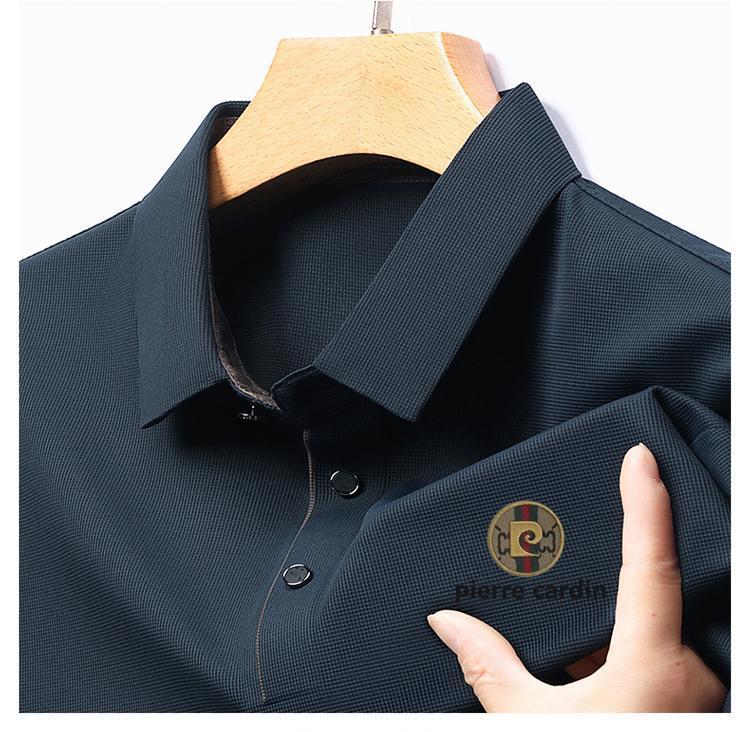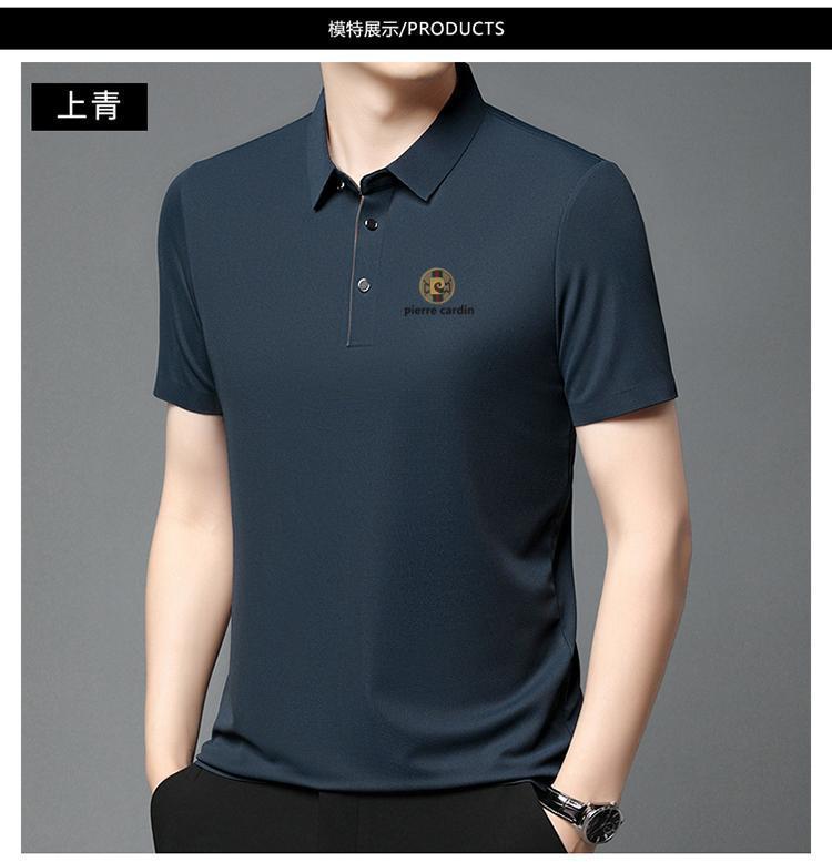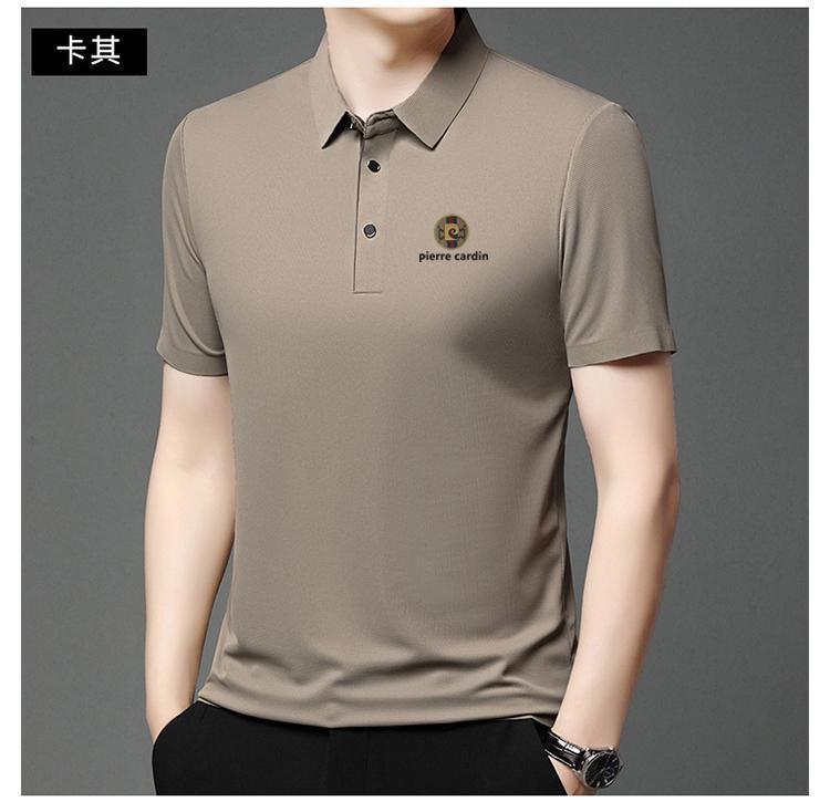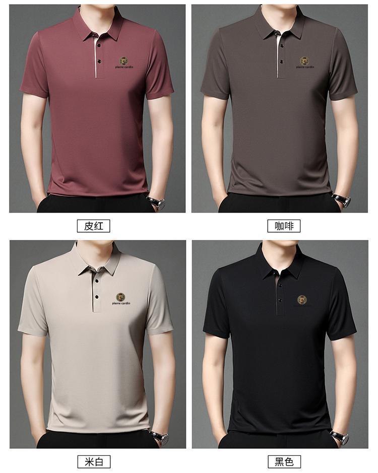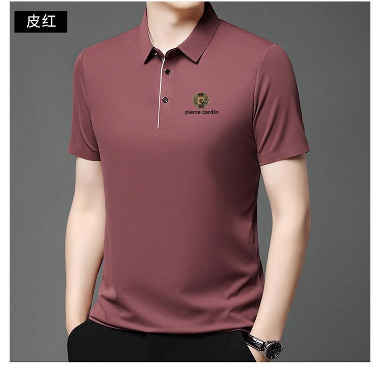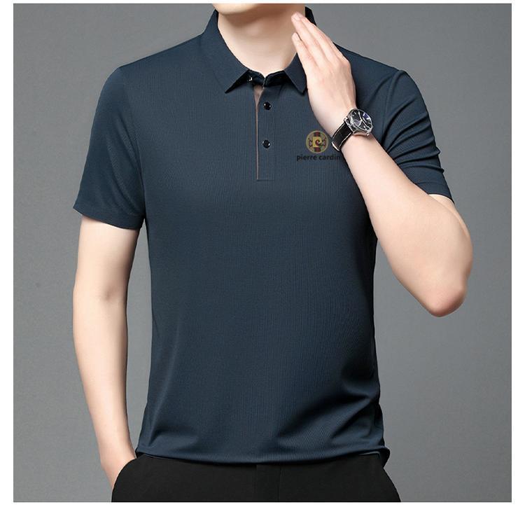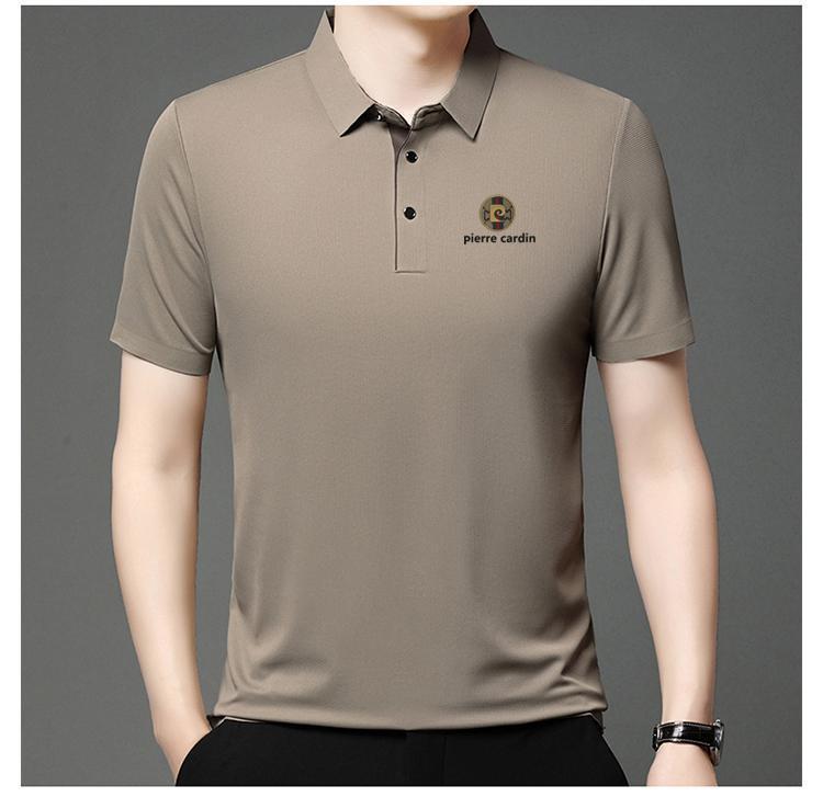 本物のピエールカルダン シルク半袖ポロシャツ 夏用 ノーアイロン 薄手 ラペルTシャツ メンズ ゆったりタイプ
