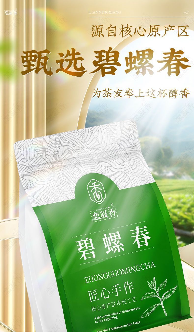 Lianningxiang 特別な花とフルーツの香りの碧螺春 2025 高山手摘み新茶強い香りと耐久性のある緑茶ティーバッグ複数の仕様