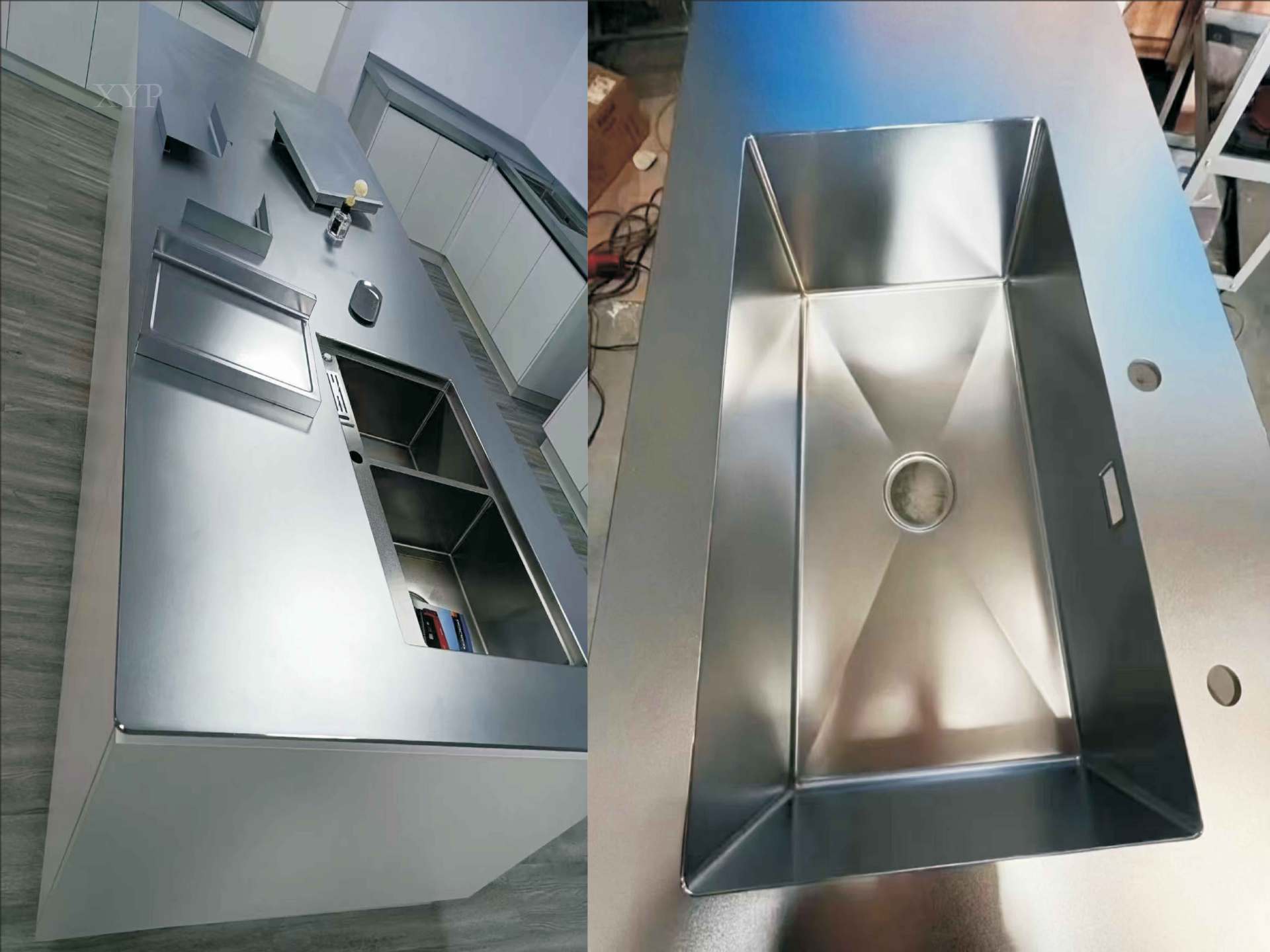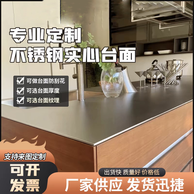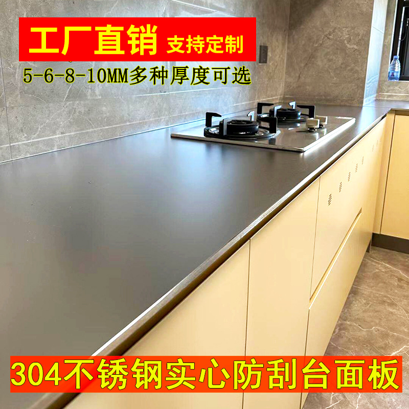 304实心不锈钢台面防刮花台面不锈钢橱柜岛台水槽一体成型定制