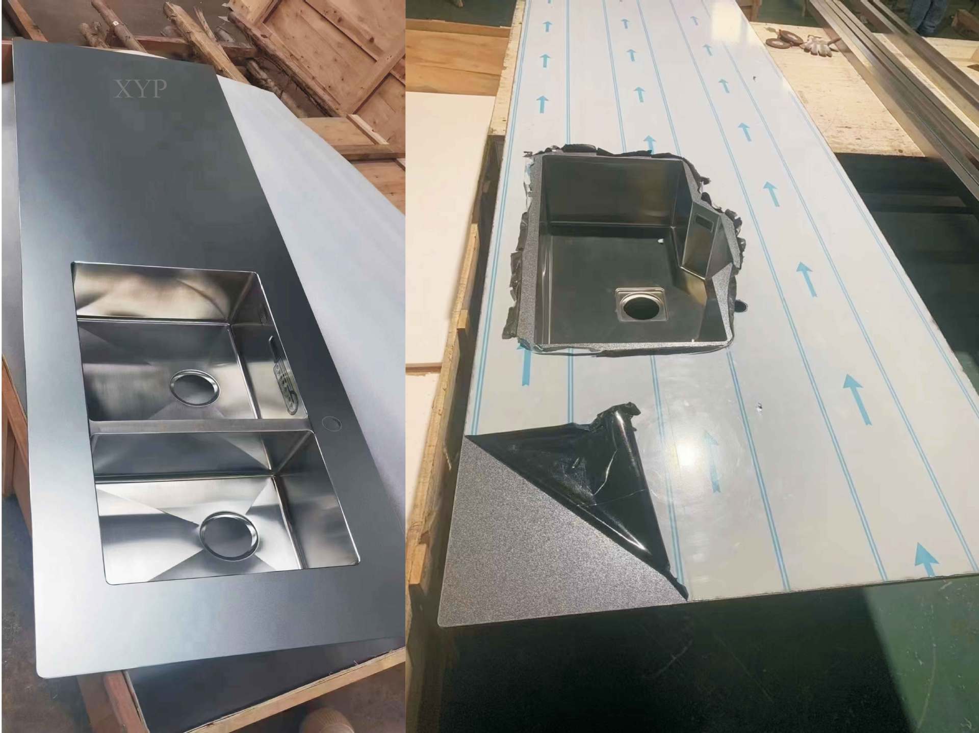 304ステンレスサンドブラスト中実床面防掻花キッチンフロスト霧面乱紋島台一体カスタム加工