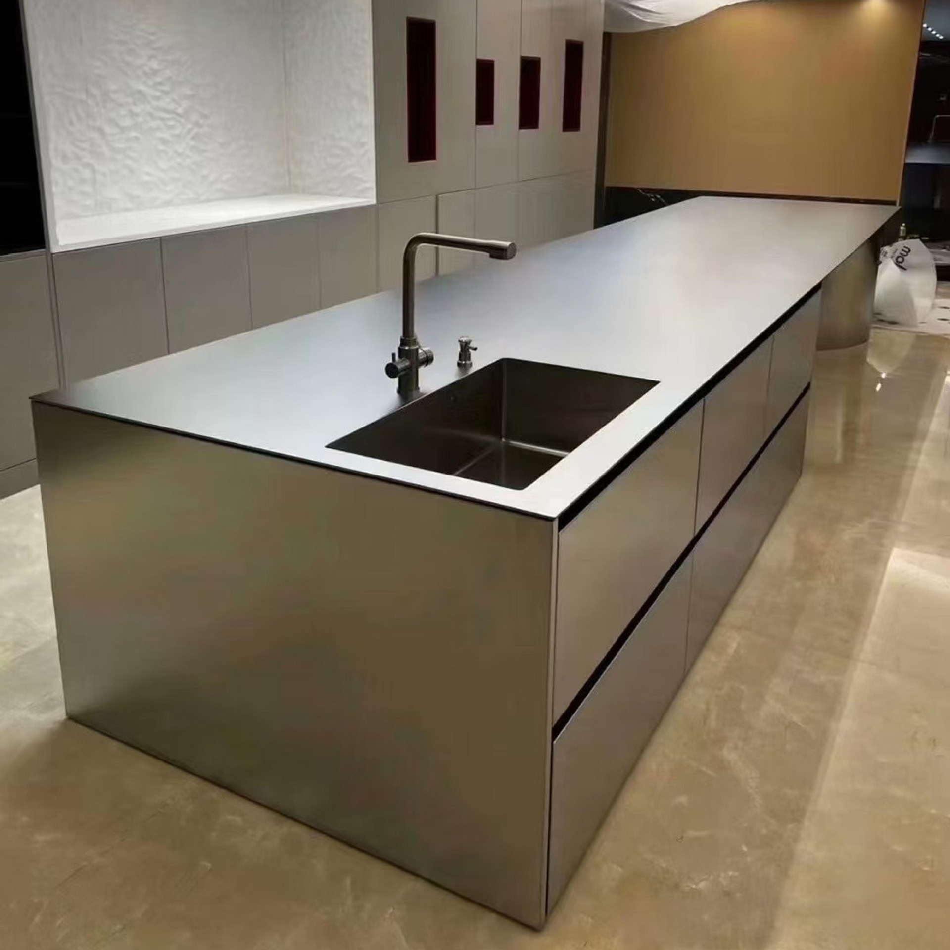 304不锈钢5mm雪晶钢喷砂纹冰裂纹岛台不锈钢厨房台面板实心防刮花
