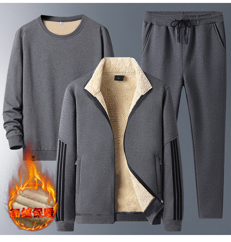 秋冬の男性用スポーツスーツ、中高年男性用ラムズウールスーツ、カジュアルスリーピーススポーツスーツ、中年お父さんスーツ