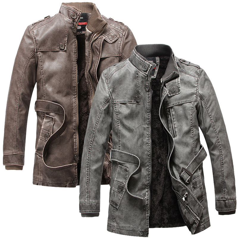 立襟とベルベットの毛皮の服の男性の中の長さのベルベットの革のジャケットは、革のレトロなコートの修身pu皮の卸売りを模倣しています