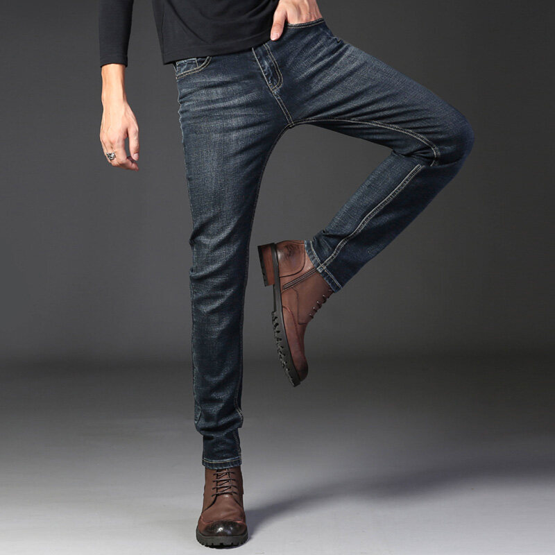 秋のメンズジーンズスリムフィットカジュアルロングパンツ韓国風トレンディジーンズ