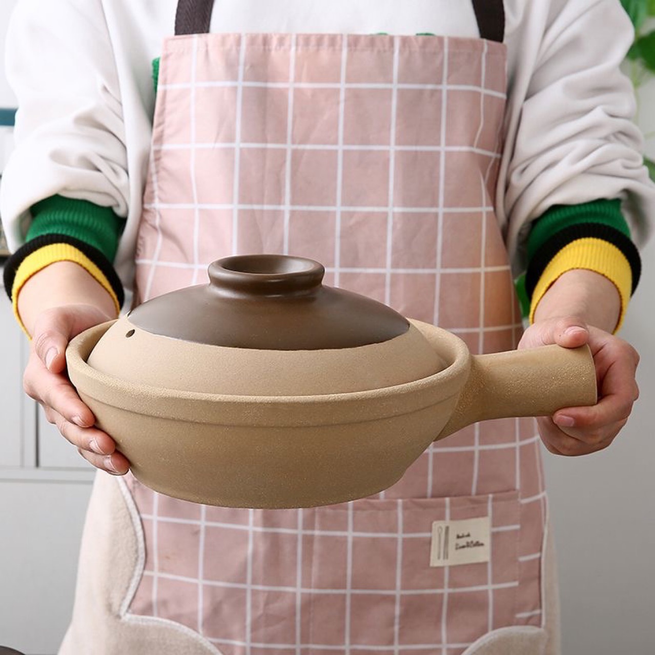 Chuxiaoyue シングルハンドルキャセロール伝統的な粘土の艶をかけられた土鍋昔ながらの土鍋家庭用ハンドル高温耐性