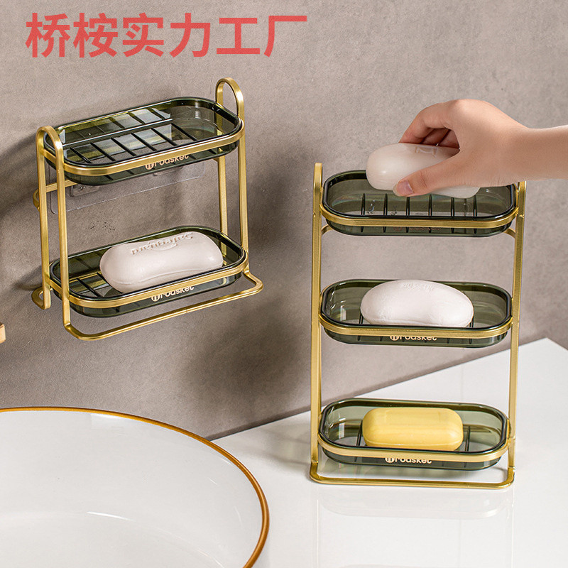 跡が残らない釘不要の壁掛け式錬鉄製ソープディッシュバスルーム二層三層排水ライト高級石鹸収納ラック
