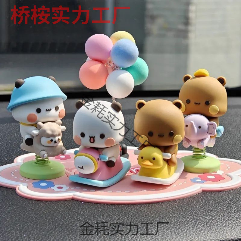 学生ネットの赤い車の置物の1、2布のパンダの人形の手は自動車の中で台を動かして馬を揺り動かして用品を飾ります。