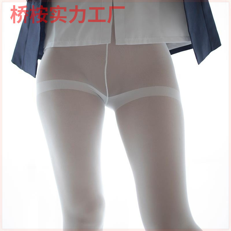 白いベルベットのレッグリングと深めの霞沢美遊のワンラインクロッチパンスト