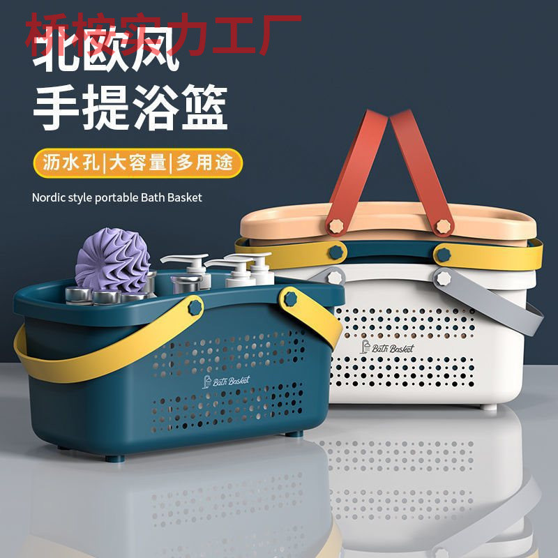 新しいポータブルバスバスケット洗濯ボックス収納バスケットバスルームバスルームホームピクニックブルー中国