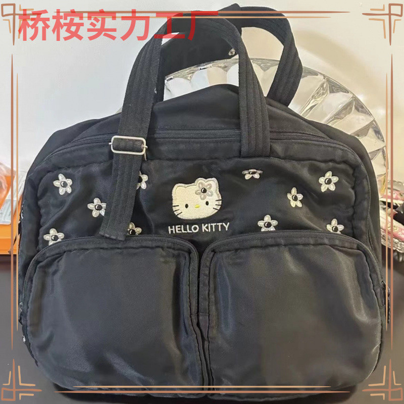 日本ハローキティ黒刺繍化粧品袋防水収納袋大容量層状ポータブルトイレタリーバッグ