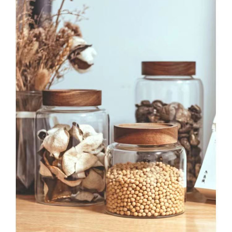 スポットみかんの皮保存瓶高ホウケイ酸ガラス茶密封瓶大型家庭用アカシア木製蓋ナッツ保存瓶