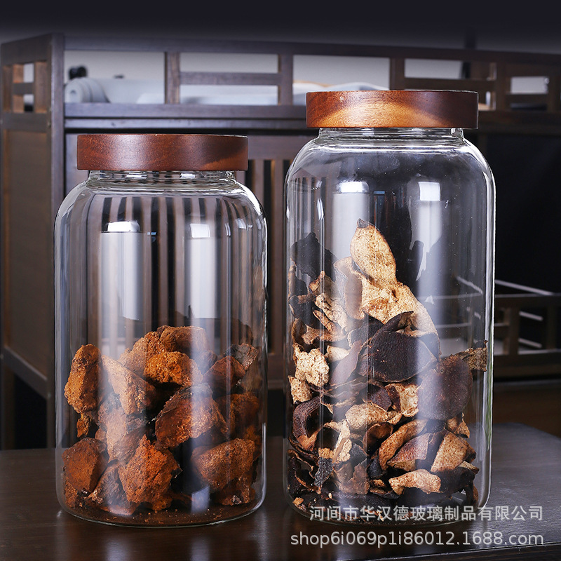 大口径ねじ口ガラス密封タンク大容量ガラス貯蔵タンクアカシア木蓋陳皮展示貯蔵タンク