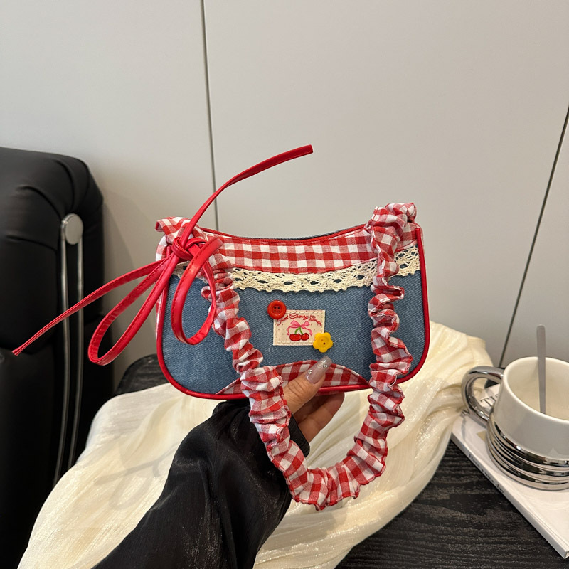 キュートで多用途なショルダーバッグ、チェック柄の小さな新鮮なポータブル通勤バッグ、ニッチなデザイン、大容量のカジュアルな脇の下バッグ