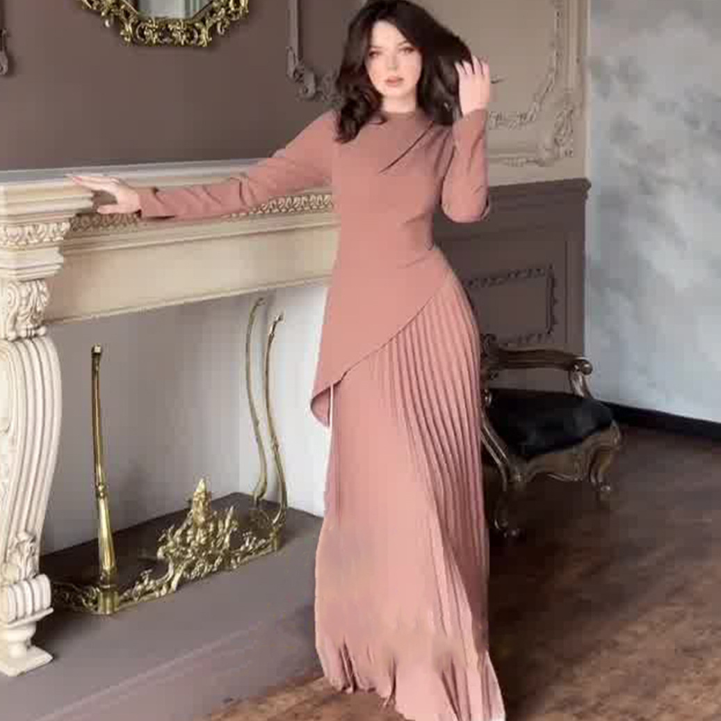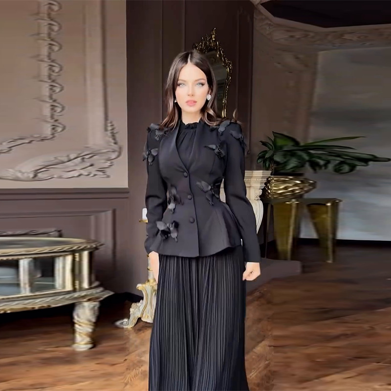 2025年春夏新型欧米クロスボーダー女装優雅ファッション気質長袖ロングスカート爽やか女神範スーツ