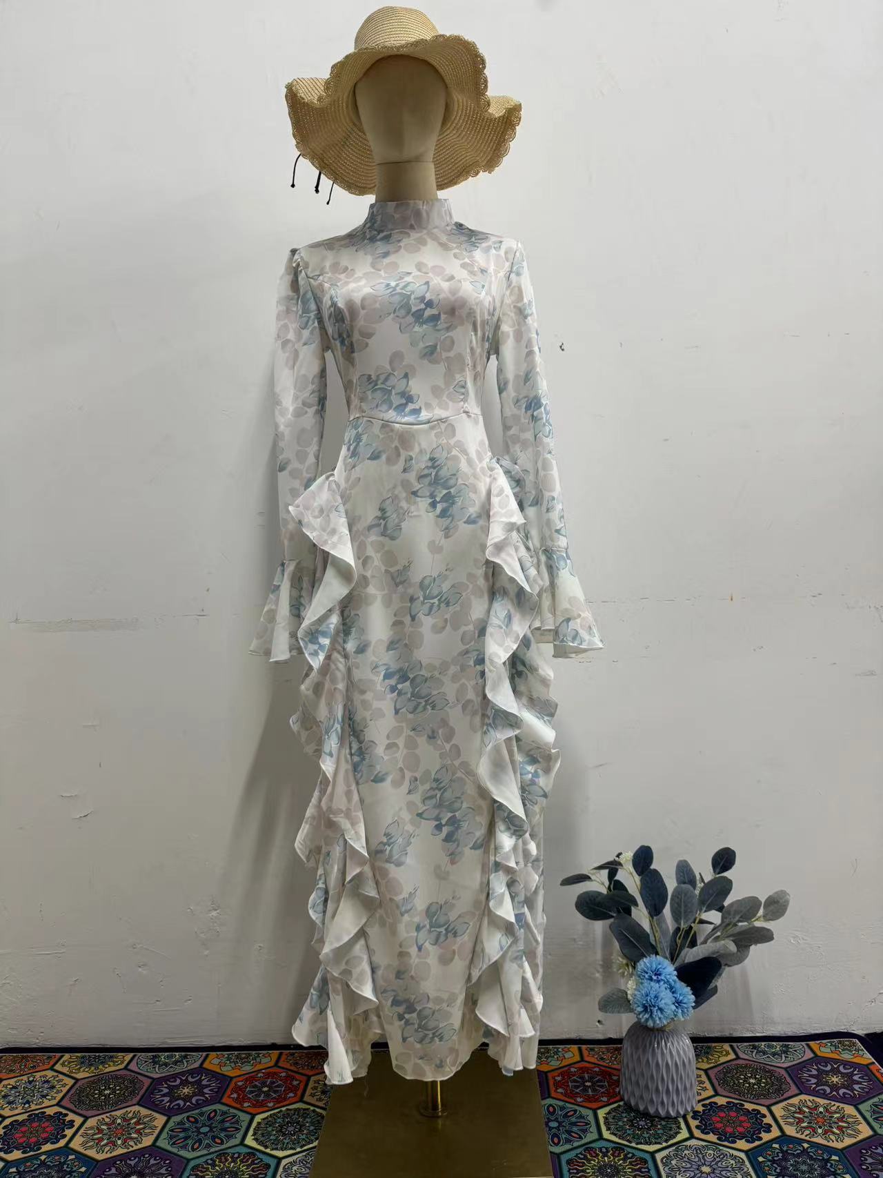 2025年新型欧米アマゾンクロスボーダー対外貿易婦人服プリントカジュアル長袖優雅ファッション百塔ロングスカート