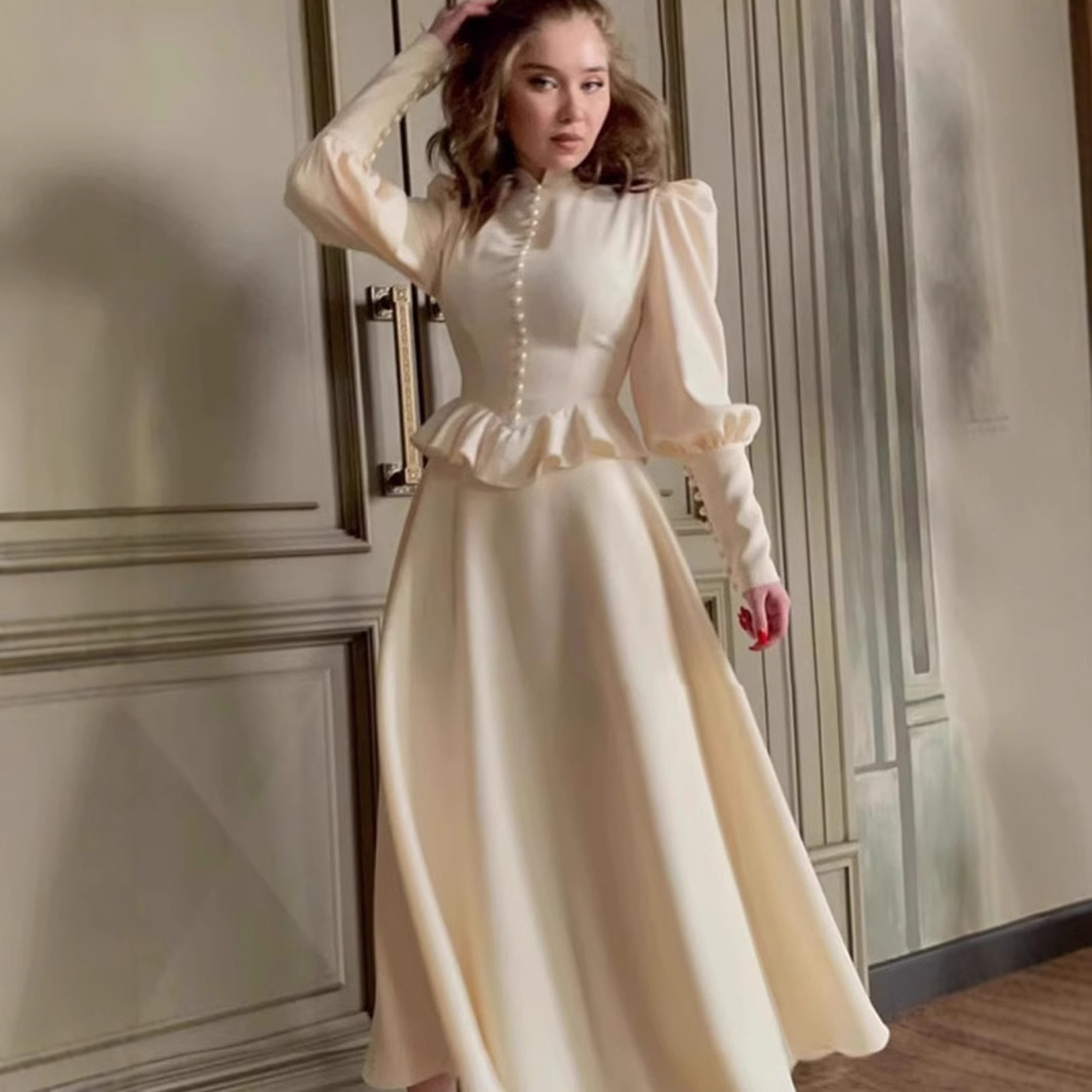 アマゾン欧米の越境2025年春の気質は長袖の気高い優雅な長いスカートのワンピースを修理します。