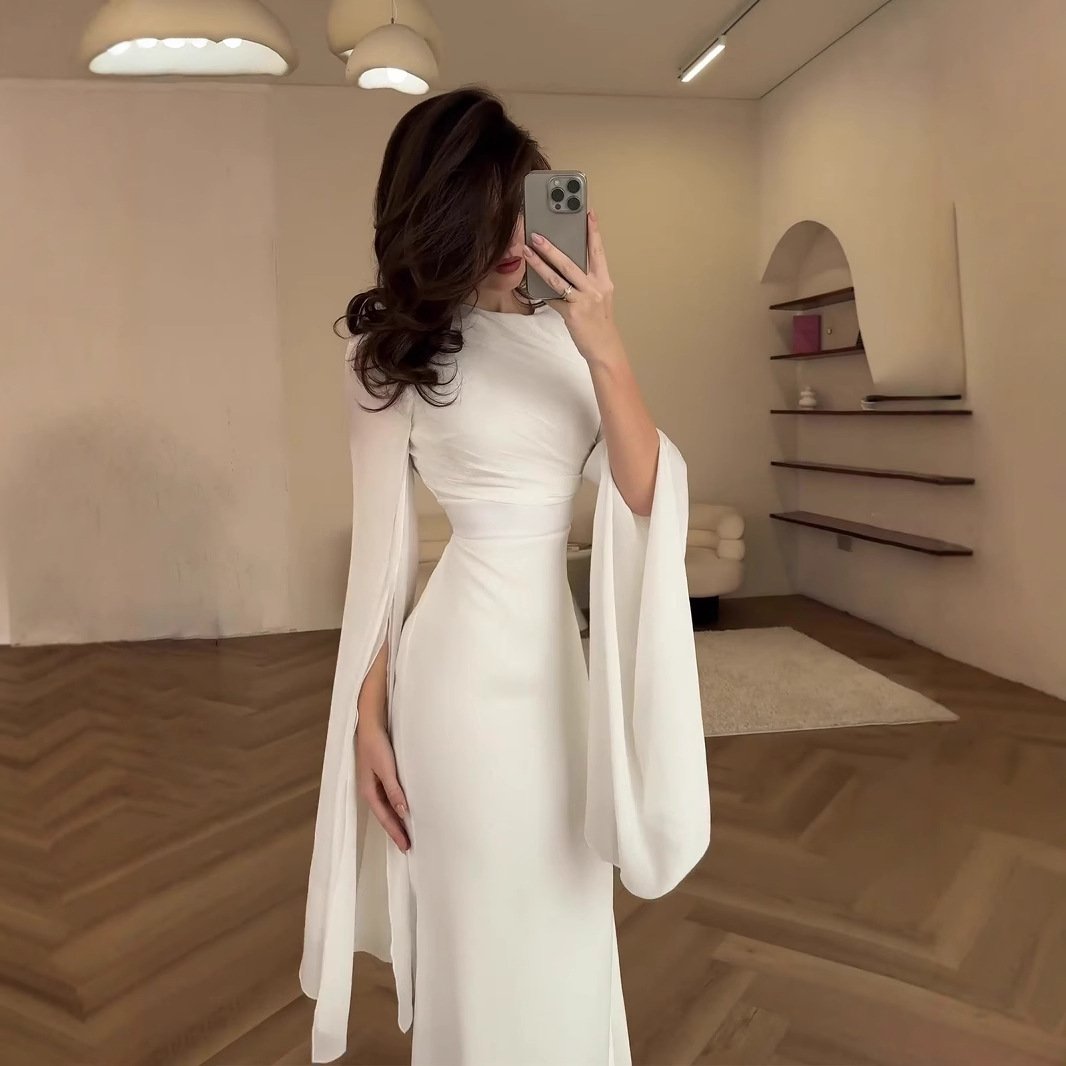 Amazonヨーロッパとアメリカのクロスボーダー2025春の新しいスタイルのセレブのスリムで豪華な気質の女性用長袖ロングスカートドレス