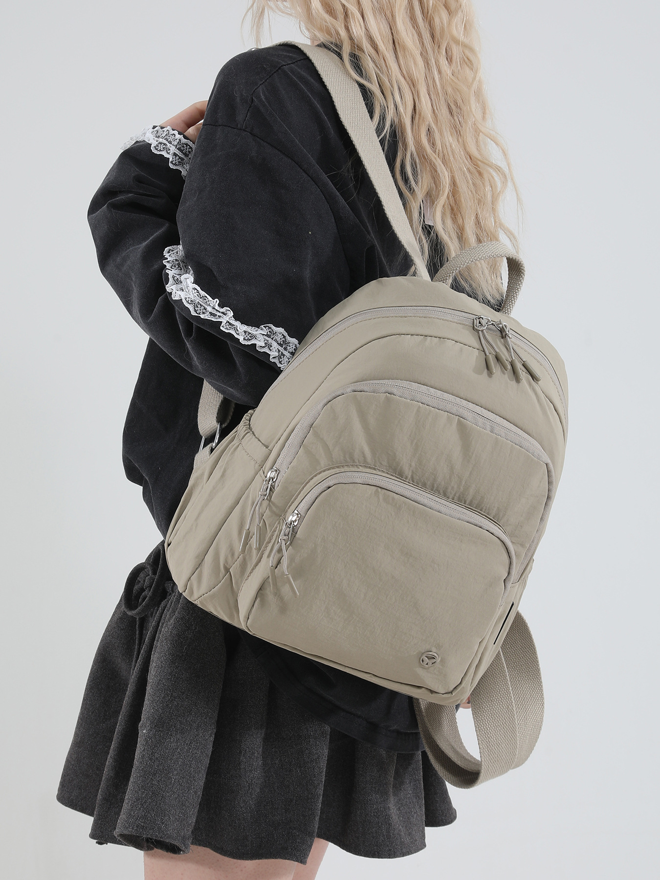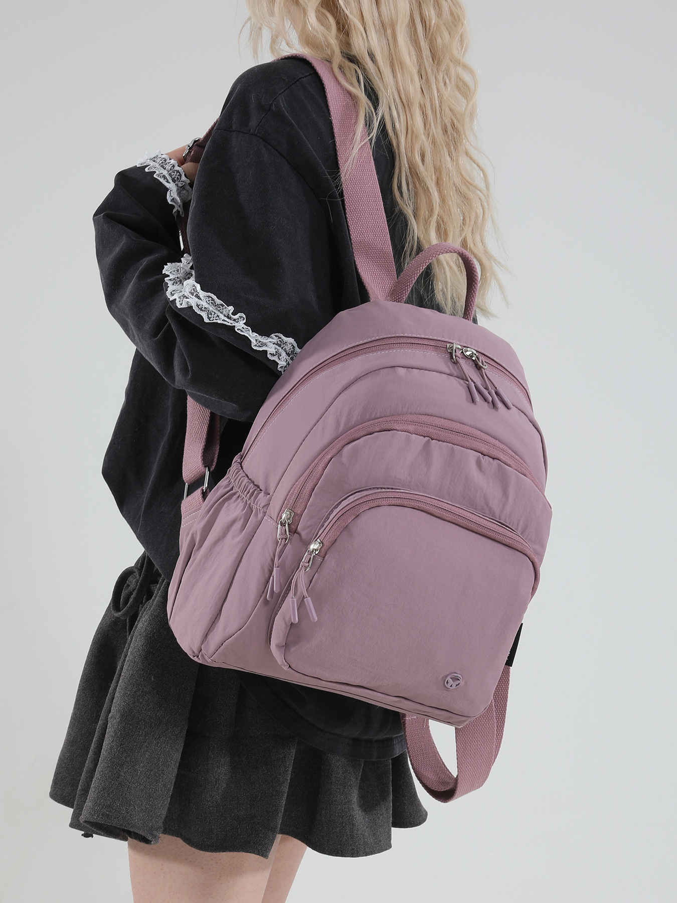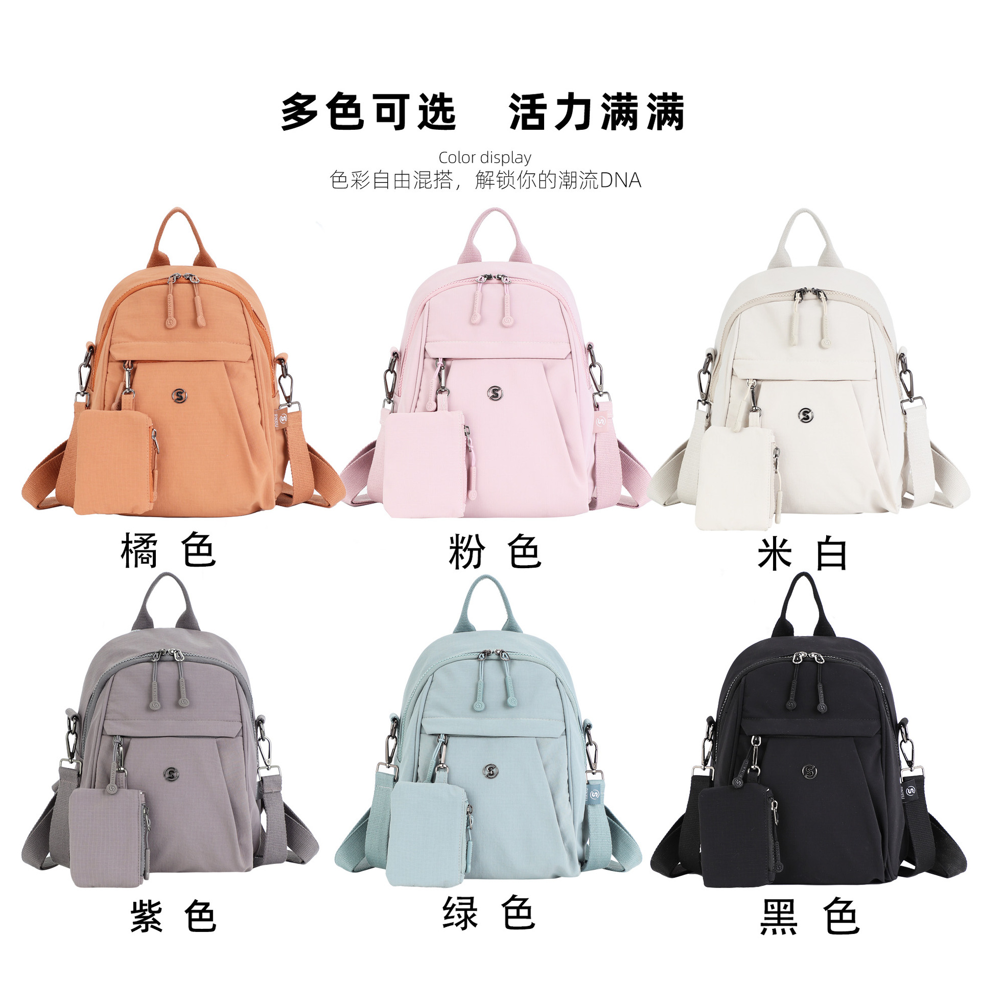 尼龙布背包休闲可爱轻便大容量双肩包初高中ins小众大学生女书包