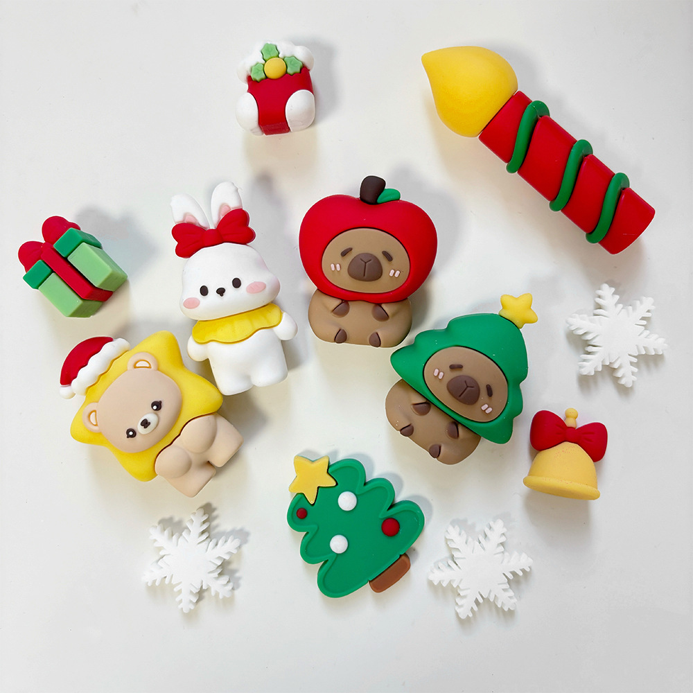 圣诞节蛋糕装饰摆件软胶圣诞树卡皮巴拉雪人圣诞雄途苹果星星站姿