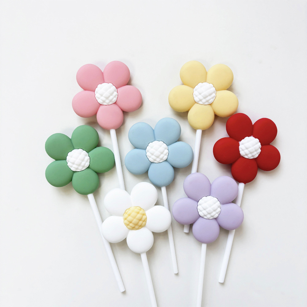 烘焙蛋糕装饰桌面汽车摆件插件花朵红黄蓝绿紫色系ins风花朵甜品