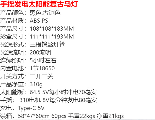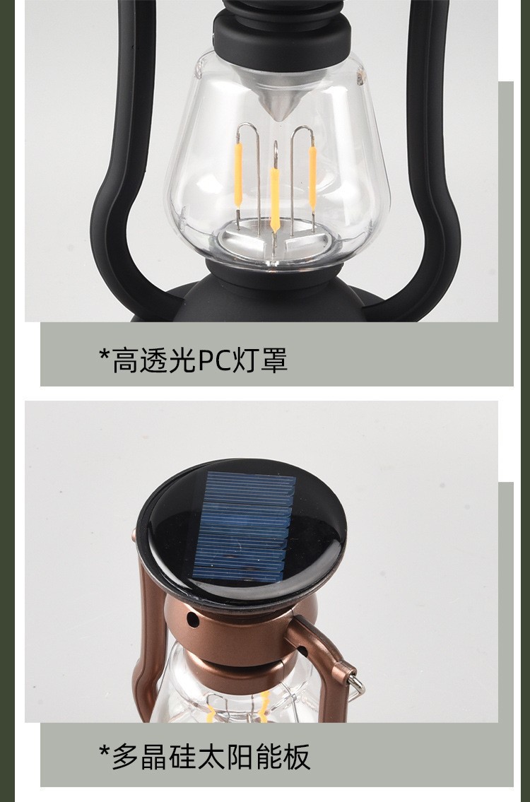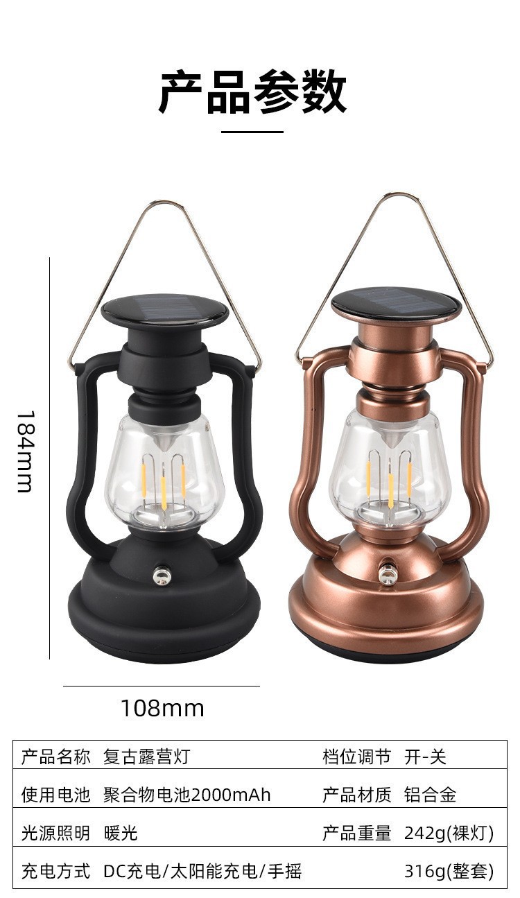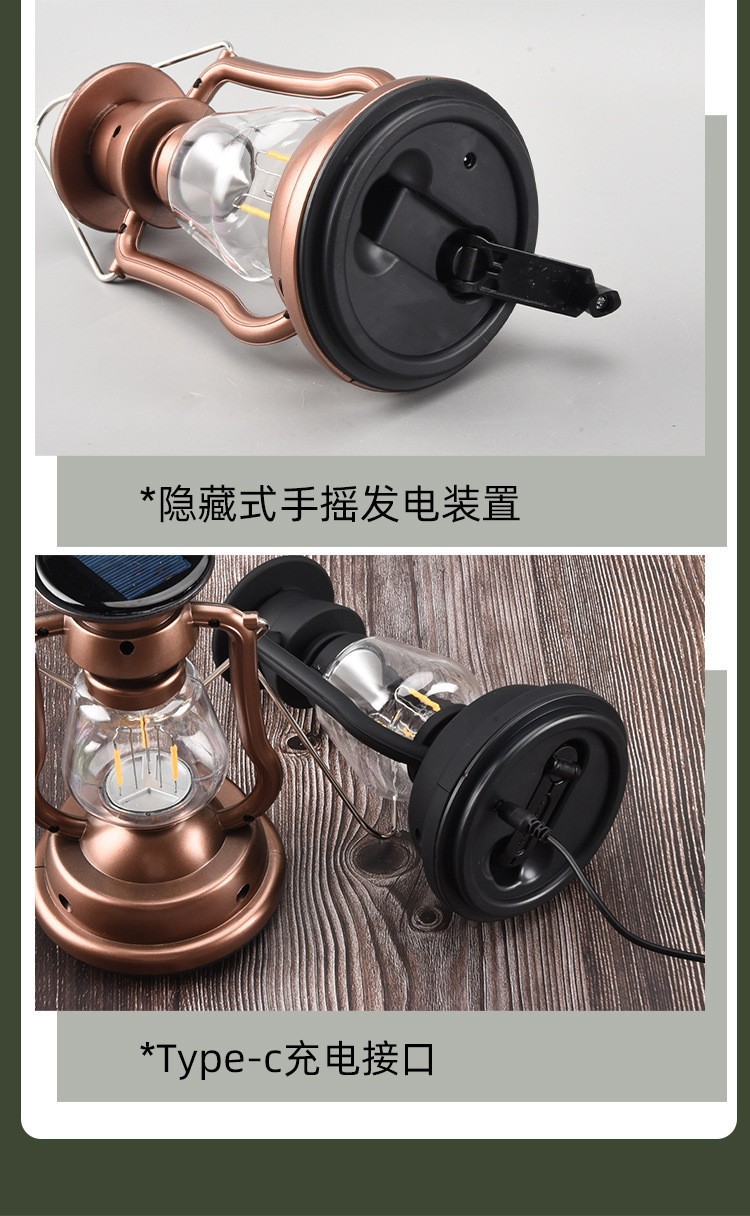 跨境太阳能手摇充电野营灯仿古马灯户外帐篷灯手提露营灯复古马灯