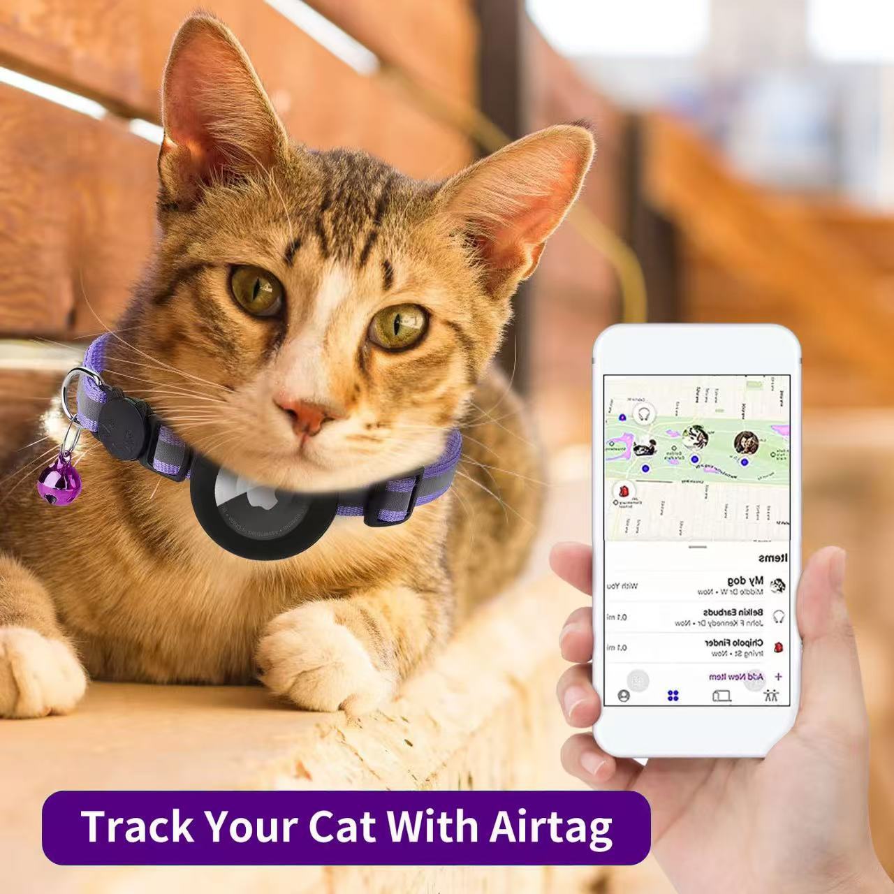 新型特許ペットAirtag猫首輪紛失防止位置決め追跡反射鈴子猫首輪