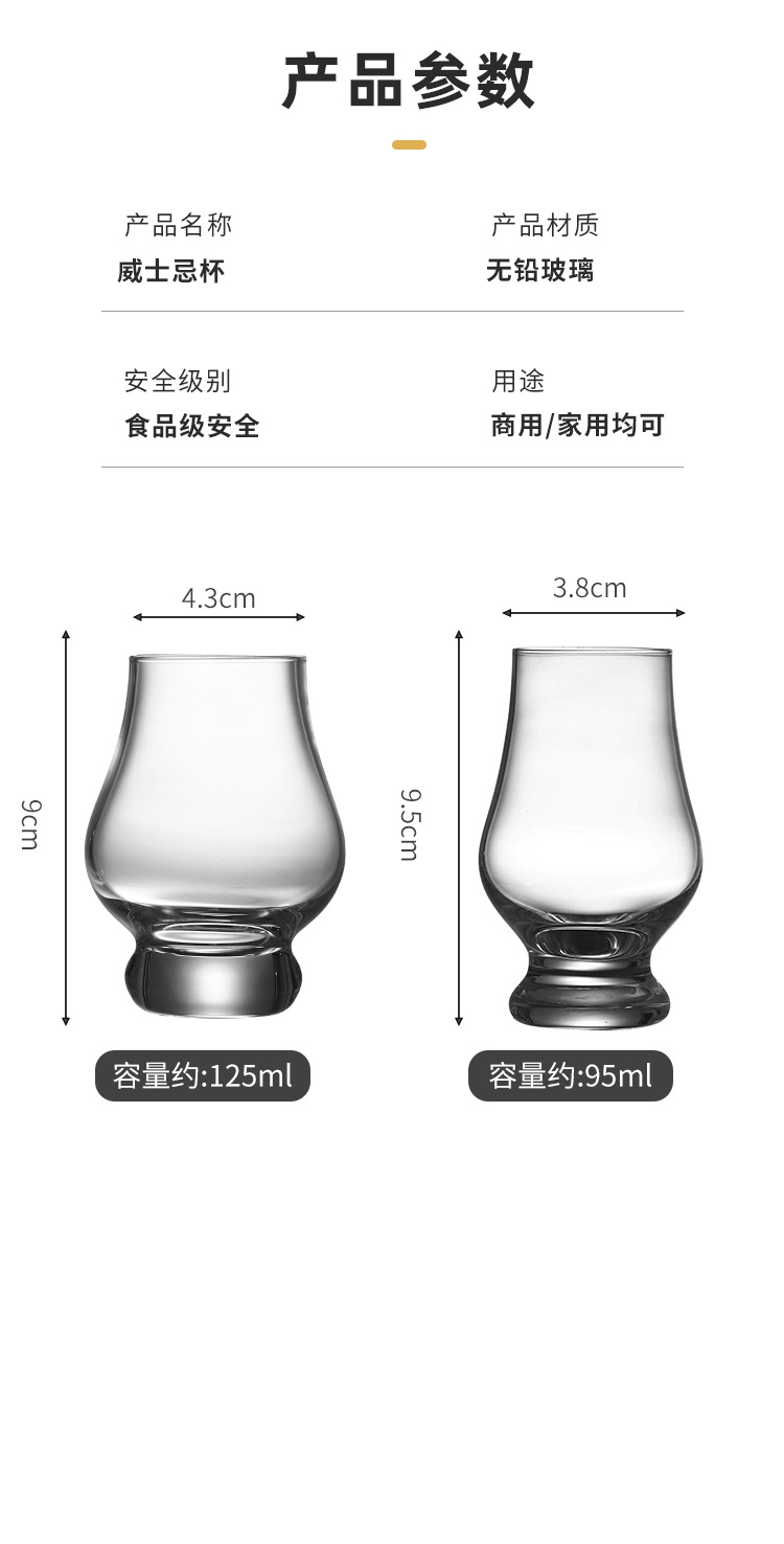 国际玻璃闻香杯威士忌品鉴杯试酒杯水晶玻璃甜酒杯ISO专业纯饮杯