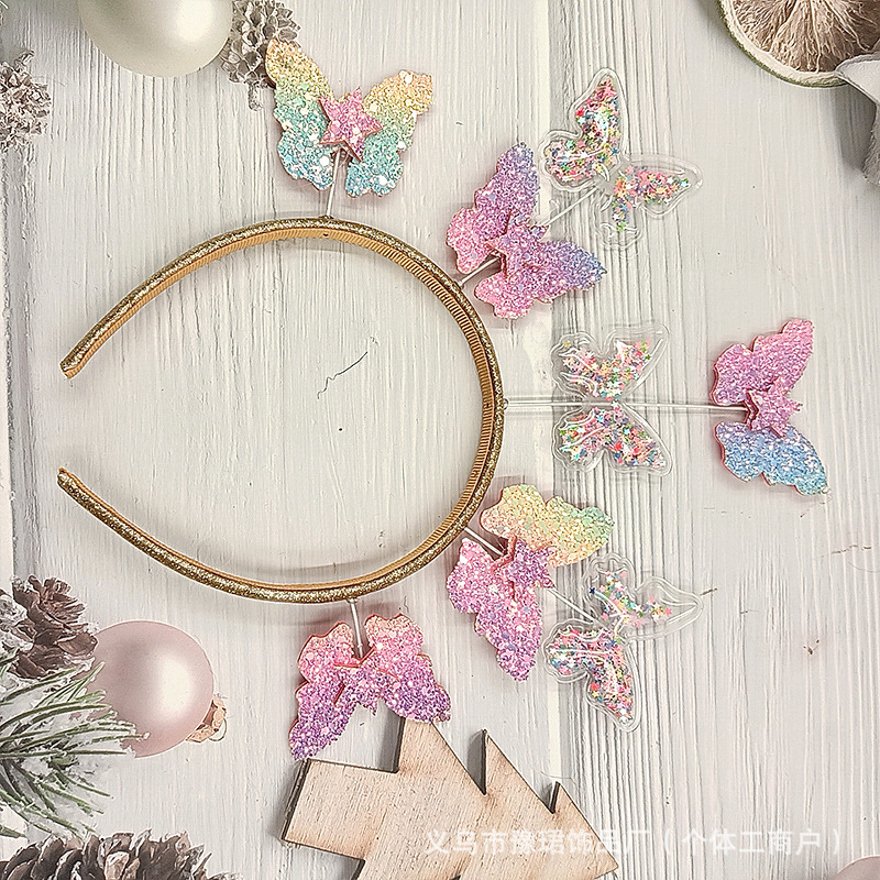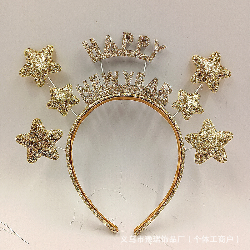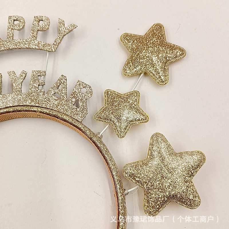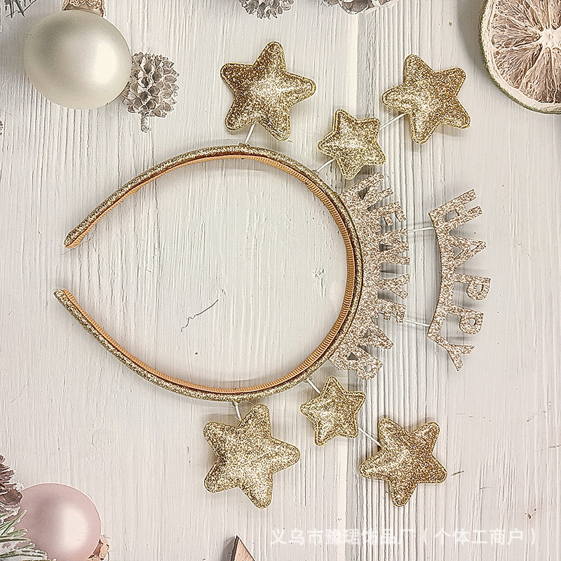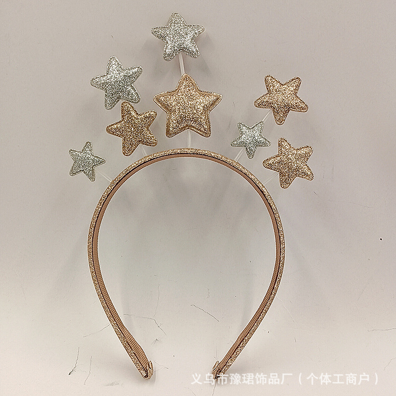 国境を越えたホリデーパーティーヘアアクセサリークリエイティブ小さな新鮮な五芒星子供用ヘアフープヘアアクセサリー金粉スパンコールヘッドバンド卸売
