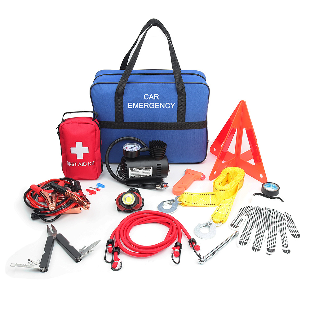 車の緊急アクセサリーツールキット車の道路ヘッドライト消火器トレーラーロープ多機能医療キット
