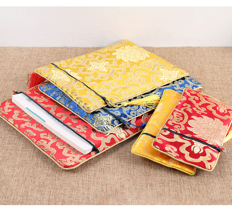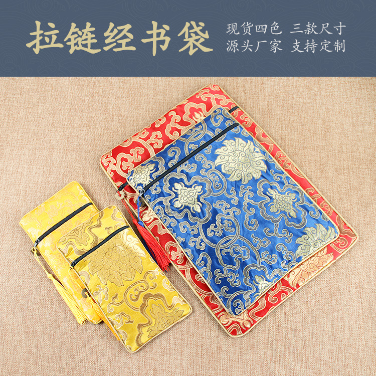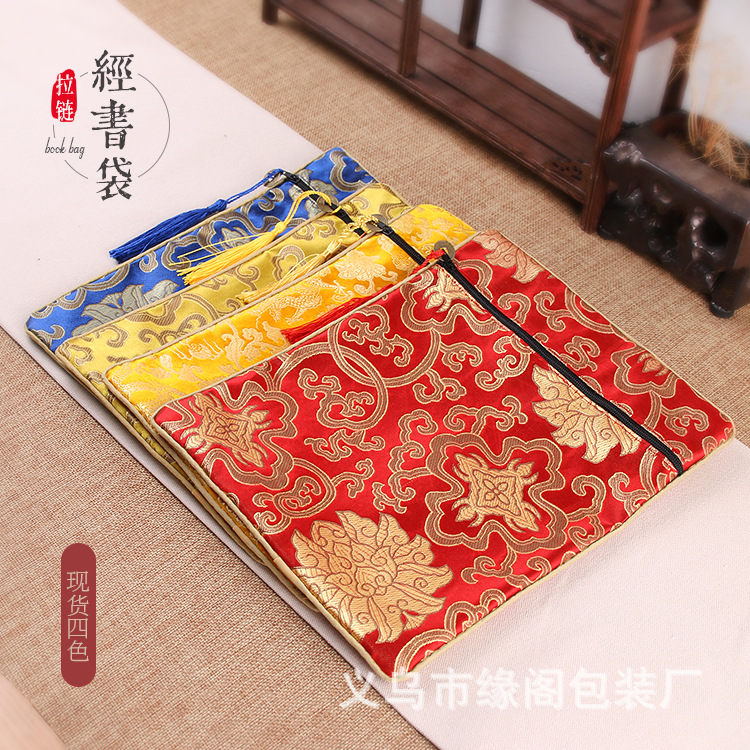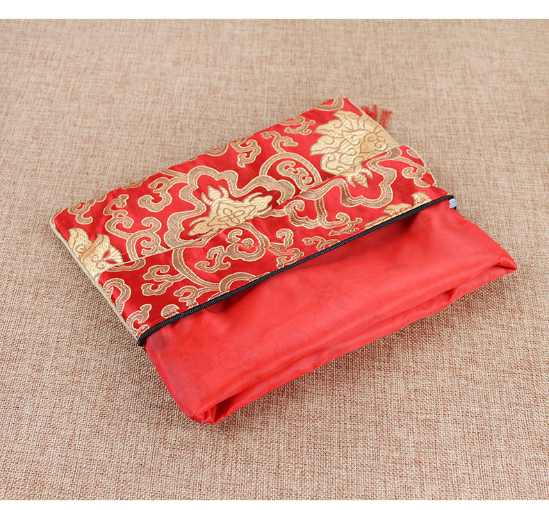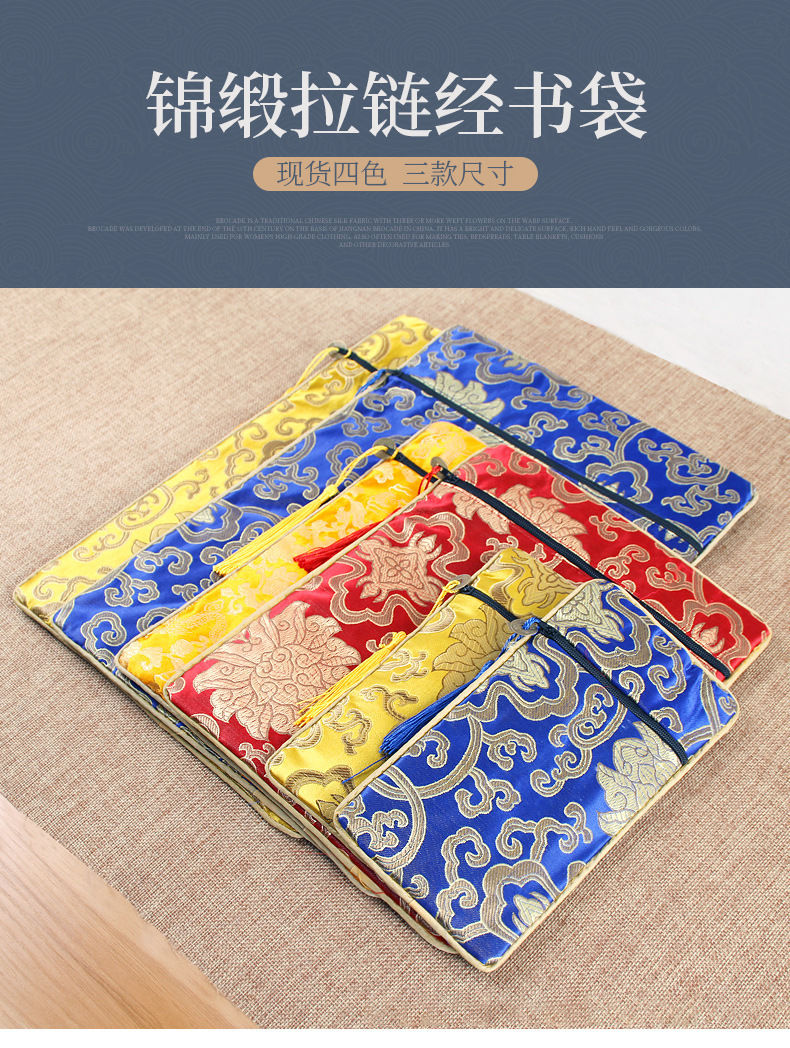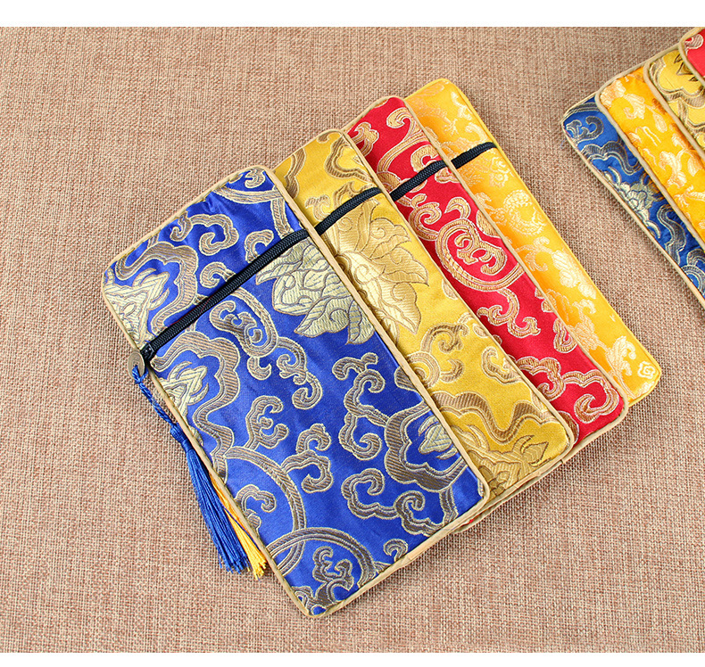 経典ジッパーバッグ、二層高級サテン経典バッグ、龍柄経典ペンバッグ、経典バッグ、経典バッグ、ライスペーパーバッグ