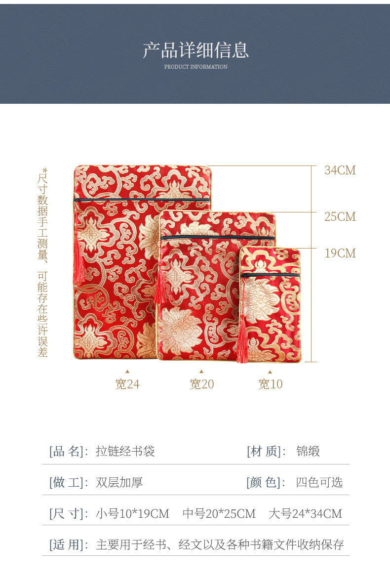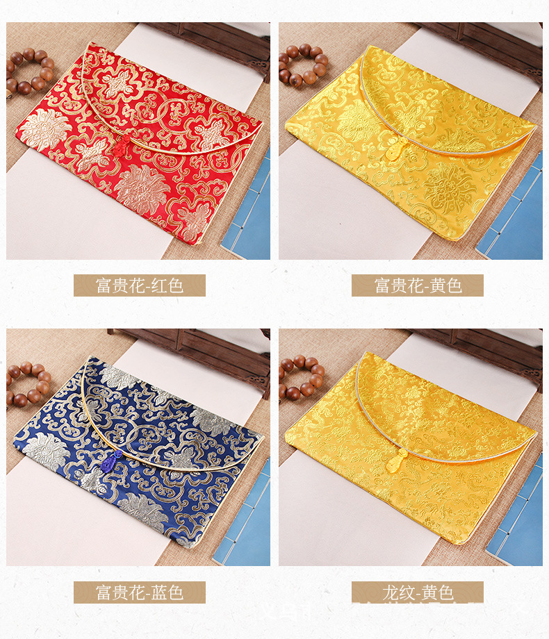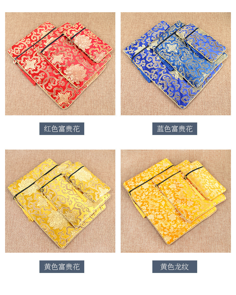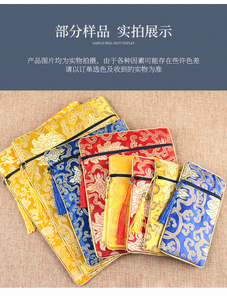経典ジッパーバッグ、二層高級サテン経典バッグ、龍柄経典ペンバッグ、経典バッグ、経典バッグ、ライスペーパーバッグ