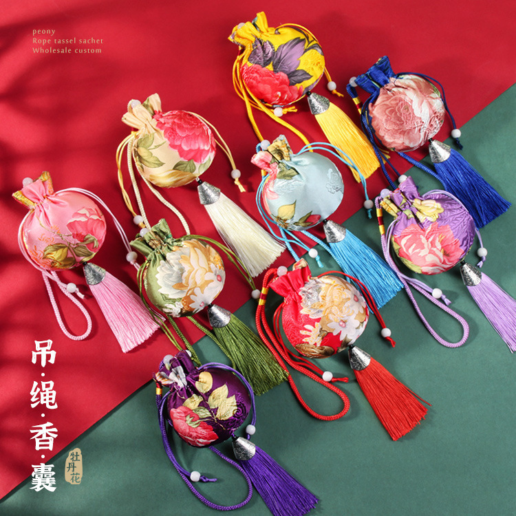 端午の節句の香包錦サテンの香嚢は無事に刺繍された福袋の自動車のペンダントの老人の財布のフリンジの香袋を身につけます。