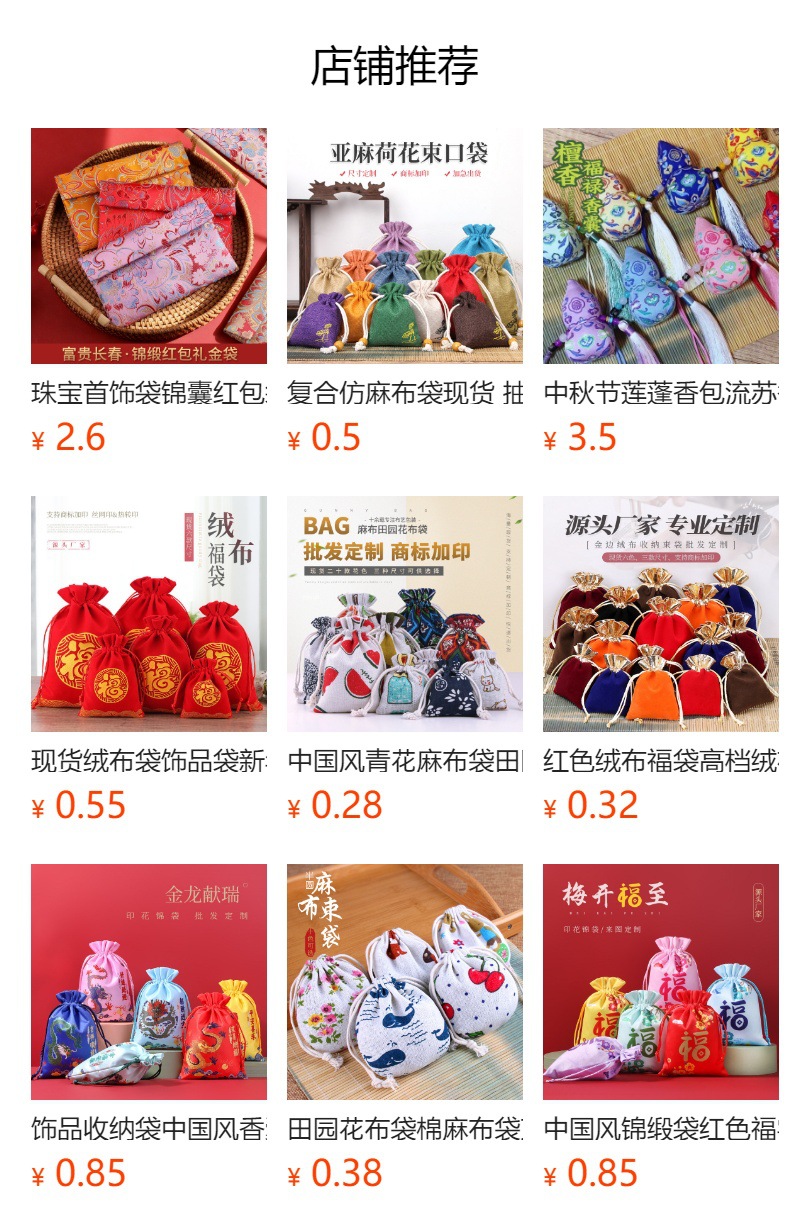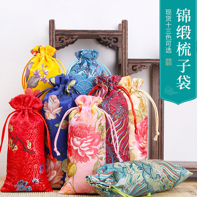梳子可移动束口锦缎印花布袋高档梳子抽绳袋包装袋大容量收纳袋