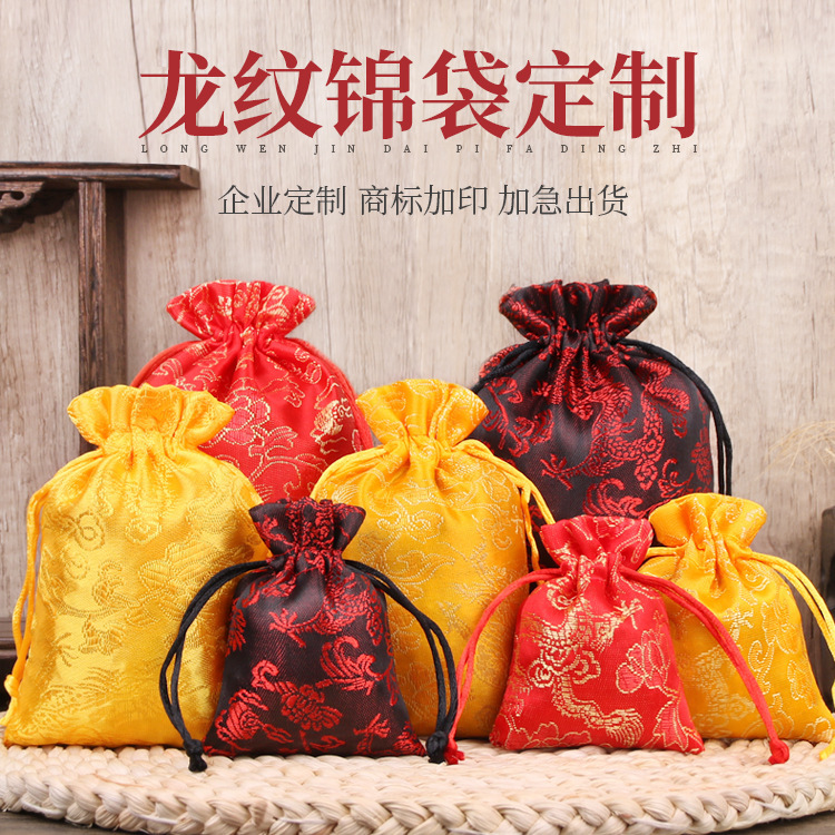 アクセサリー収納袋龍紋サテン小布袋錦袋レトロ中国風ジュエリーバッグ引き紐ポケット