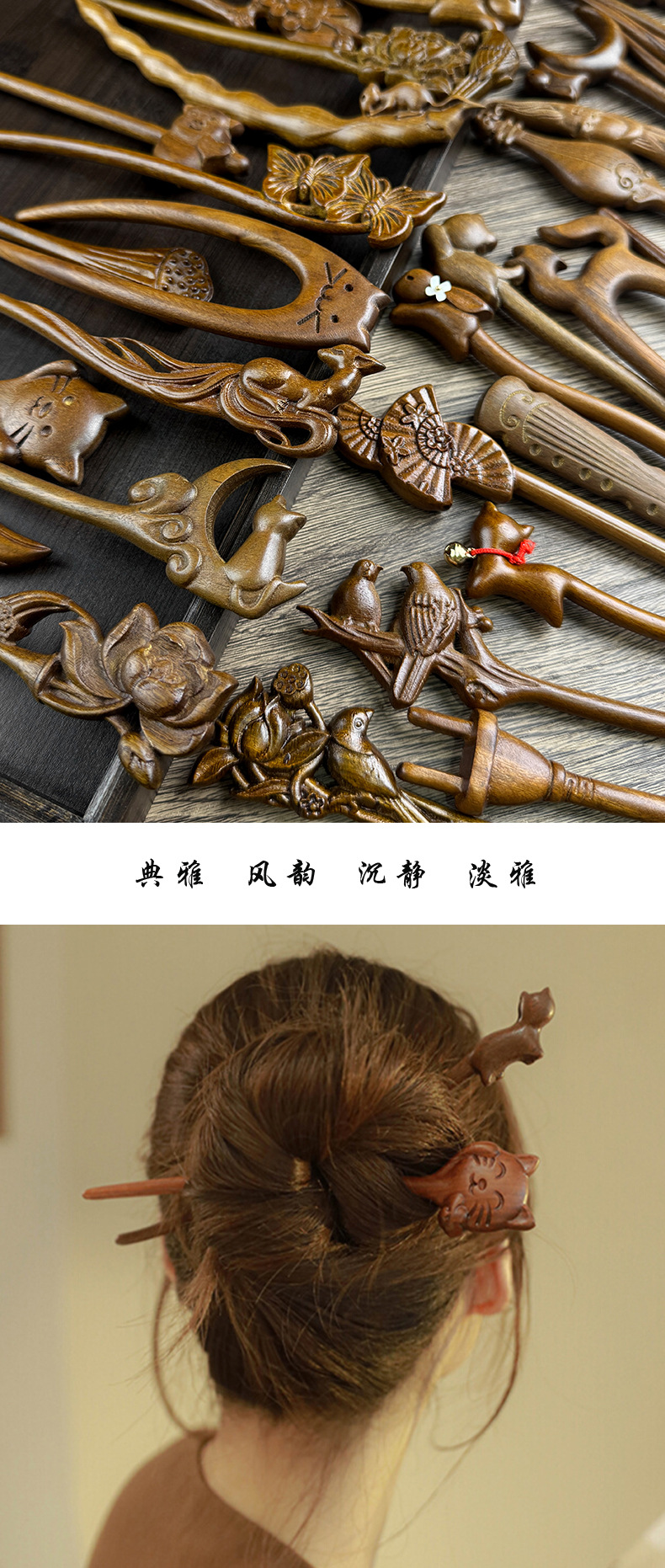 包郵便真檀木ヘアピン新中国式高級感古風ヘアピンヘアピンヘアピンヘアピン黒檀木素ヘアピン本体