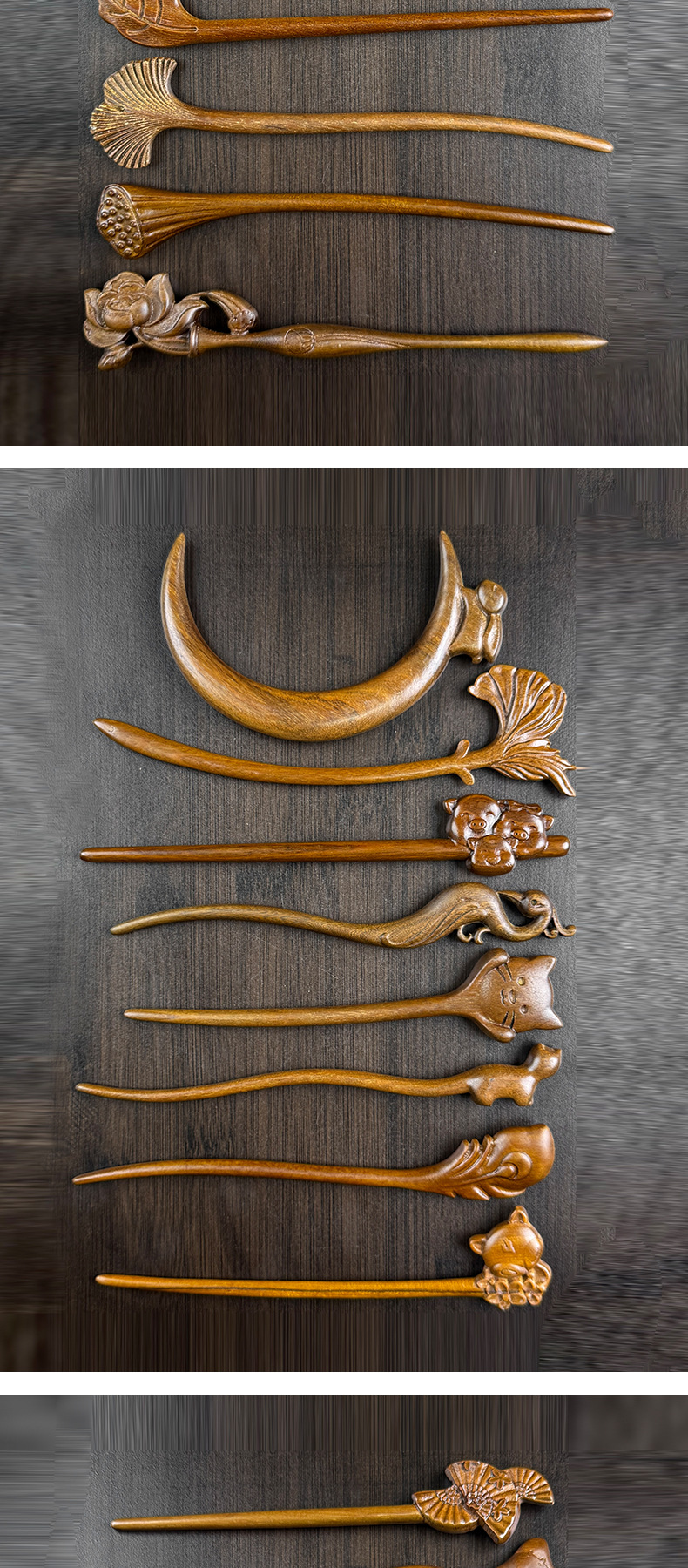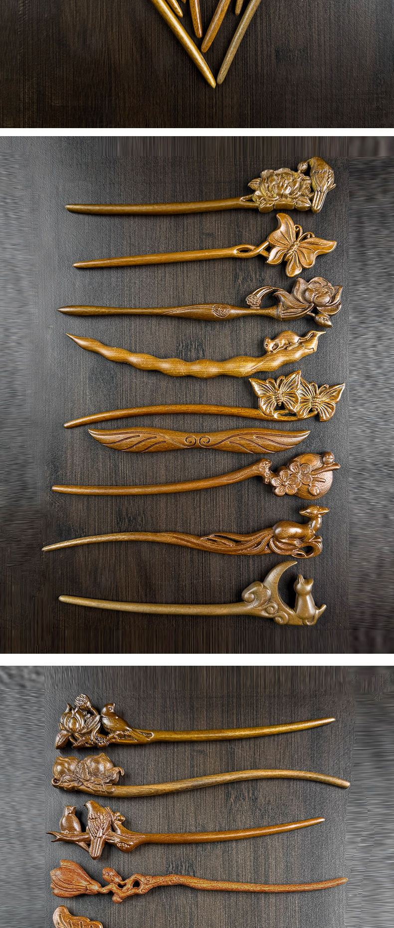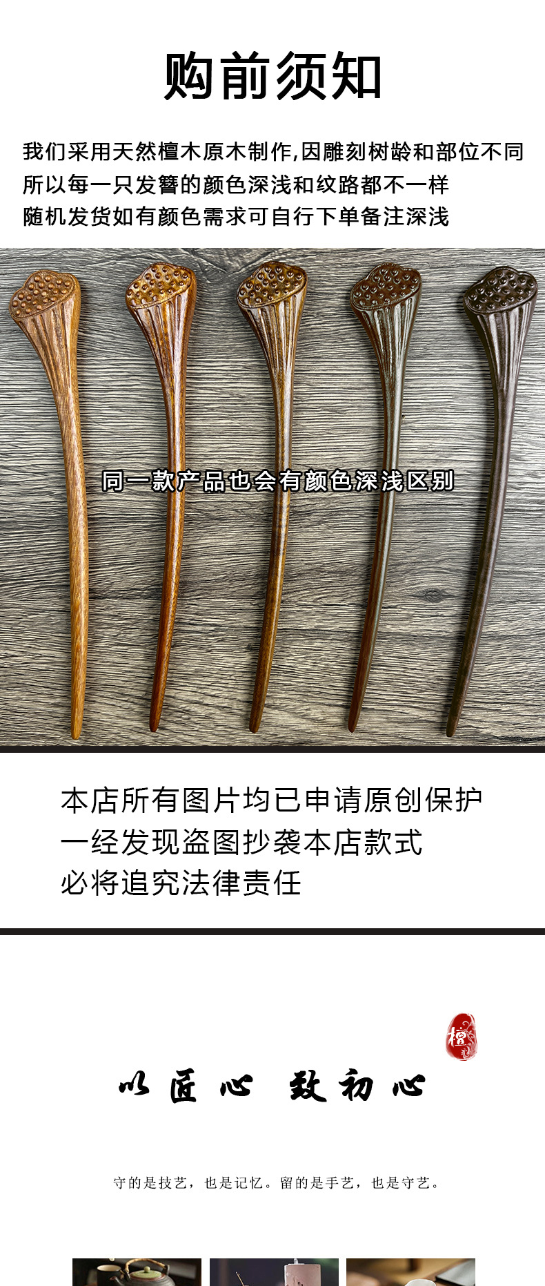 「紫光檀u钗合集」 15cm实木无漆无染色古风旗袍汉服日常高级发簪