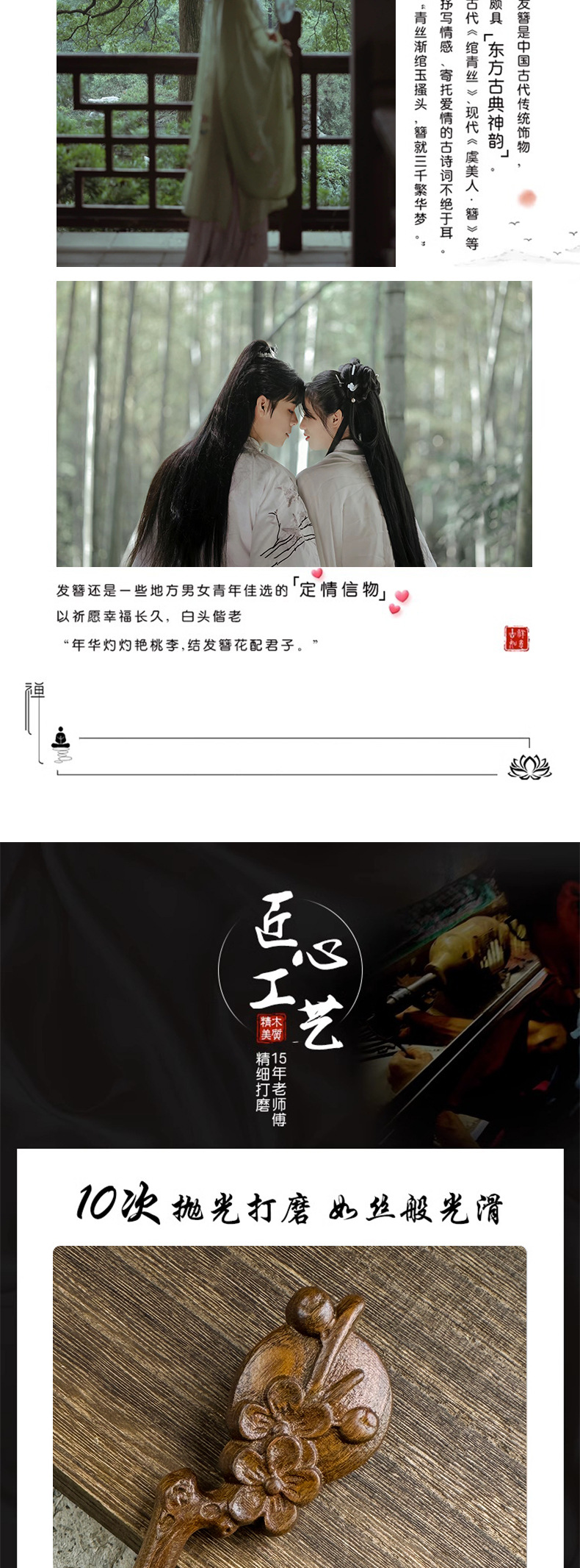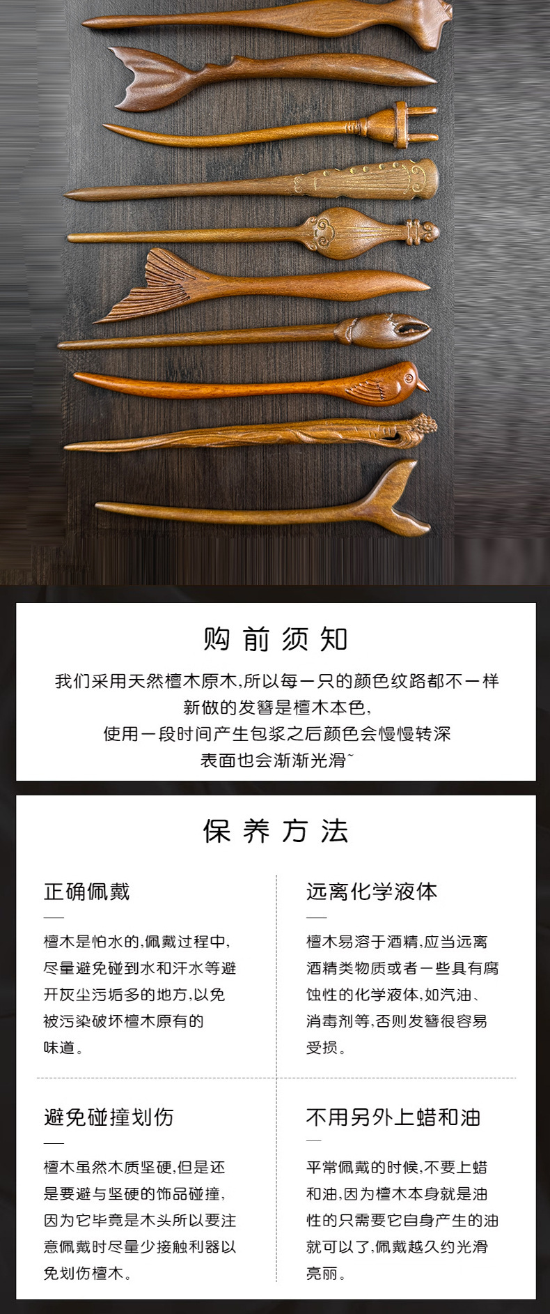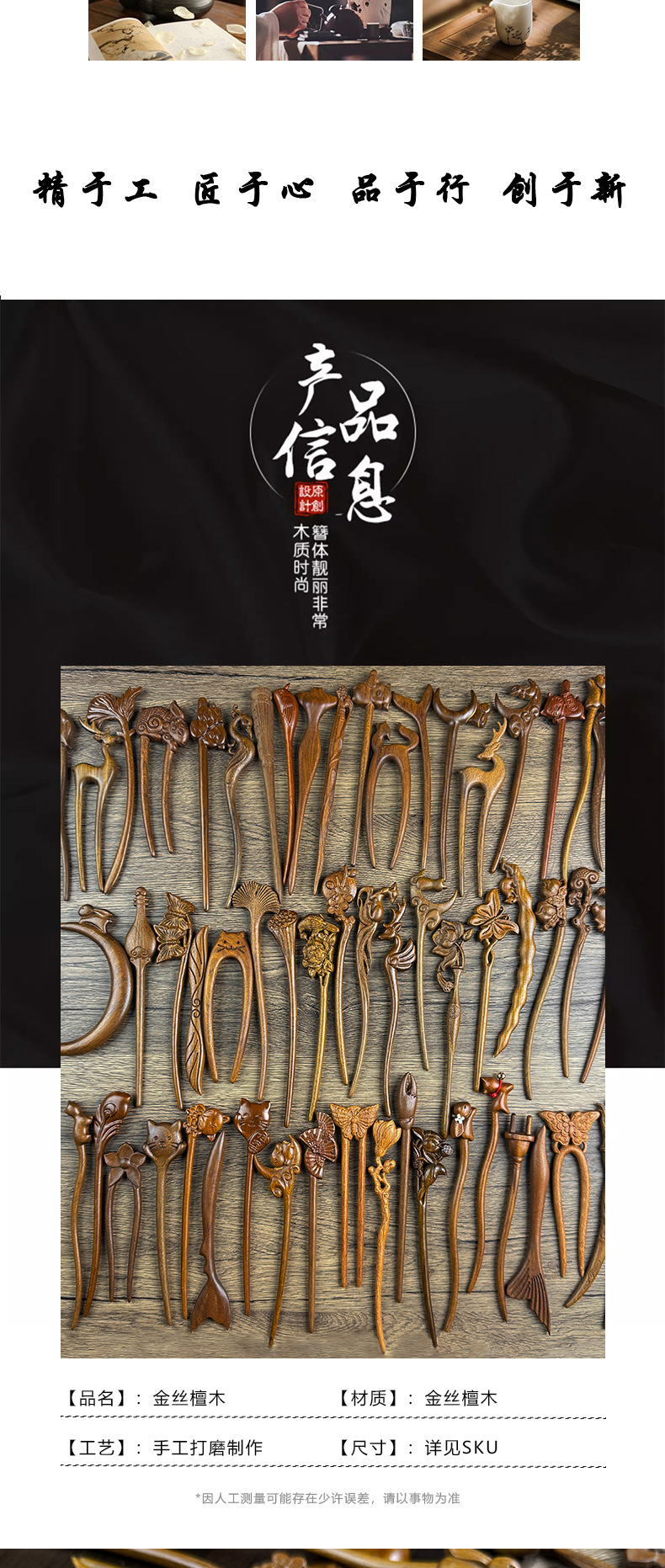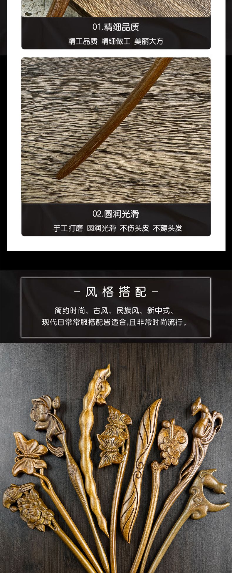 「紫光檀u钗合集」 15cm实木无漆无染色古风旗袍汉服日常高级发簪