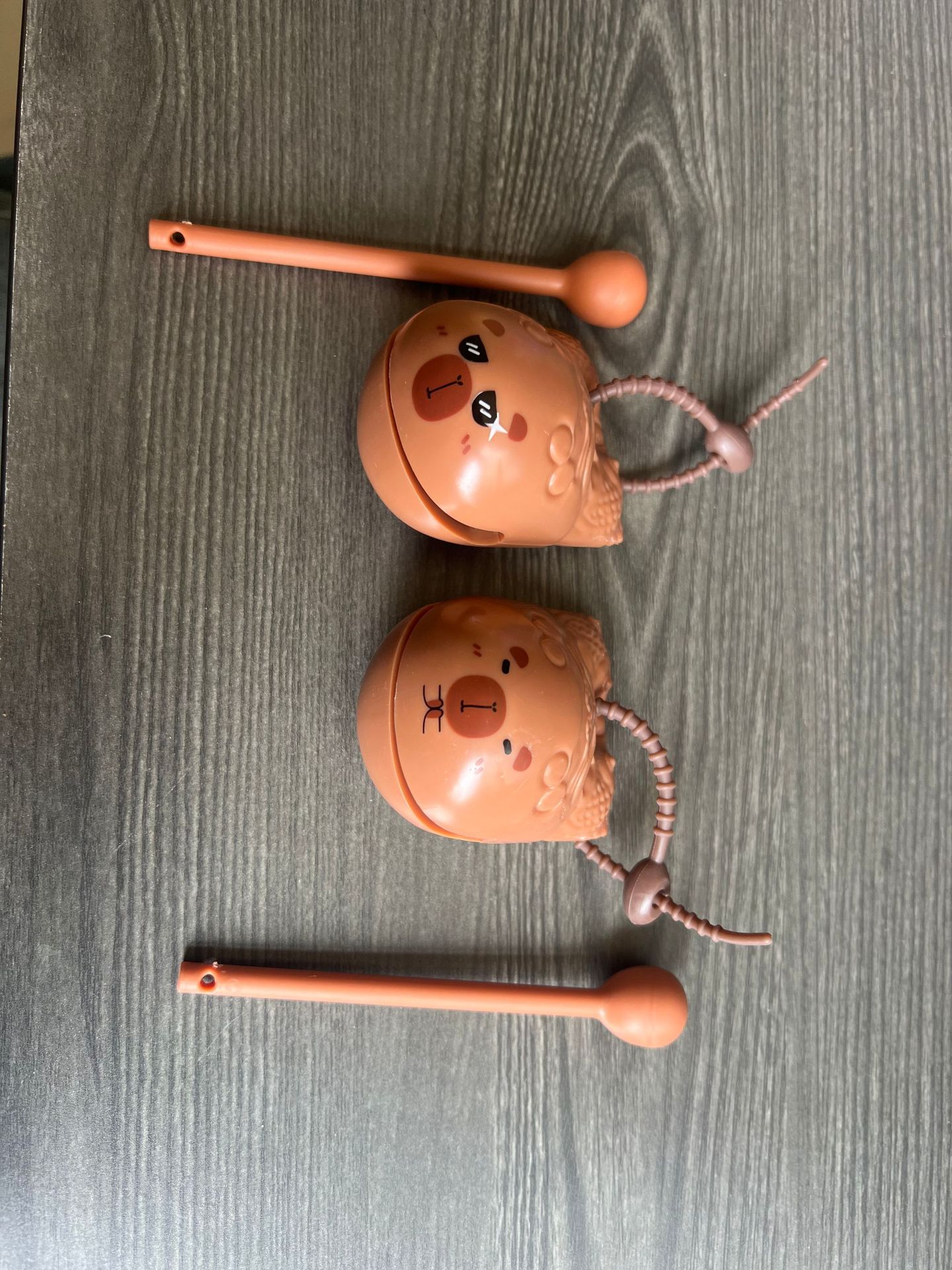 オフィスの木の魚を叩いて解凍します。神器の赤い本と同じ木の魚の打楽器が可愛いです。