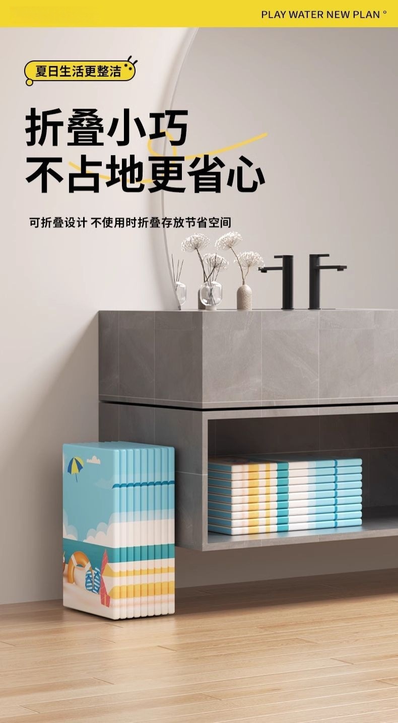 お風呂桶は折りたたみます。大人用の家庭用のお風呂桶です。