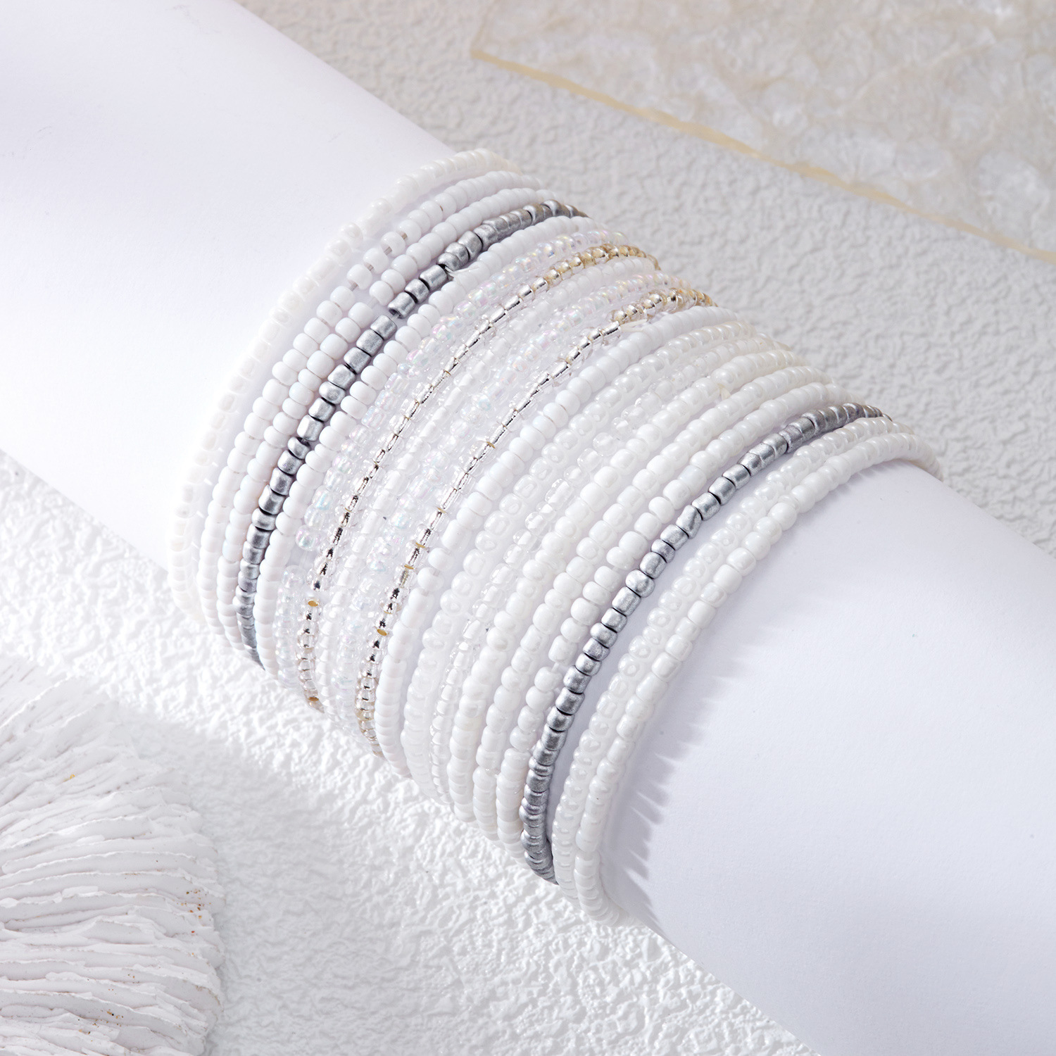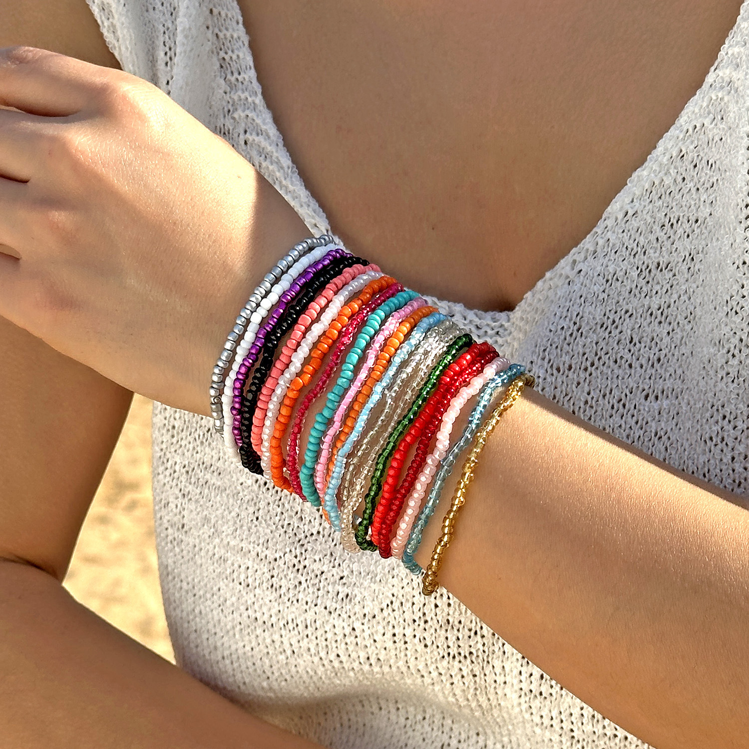 ボヘミアンリゾート風カラービーズ弾力手串百合小衆デザイン感同色重ね付けブレスレットセット