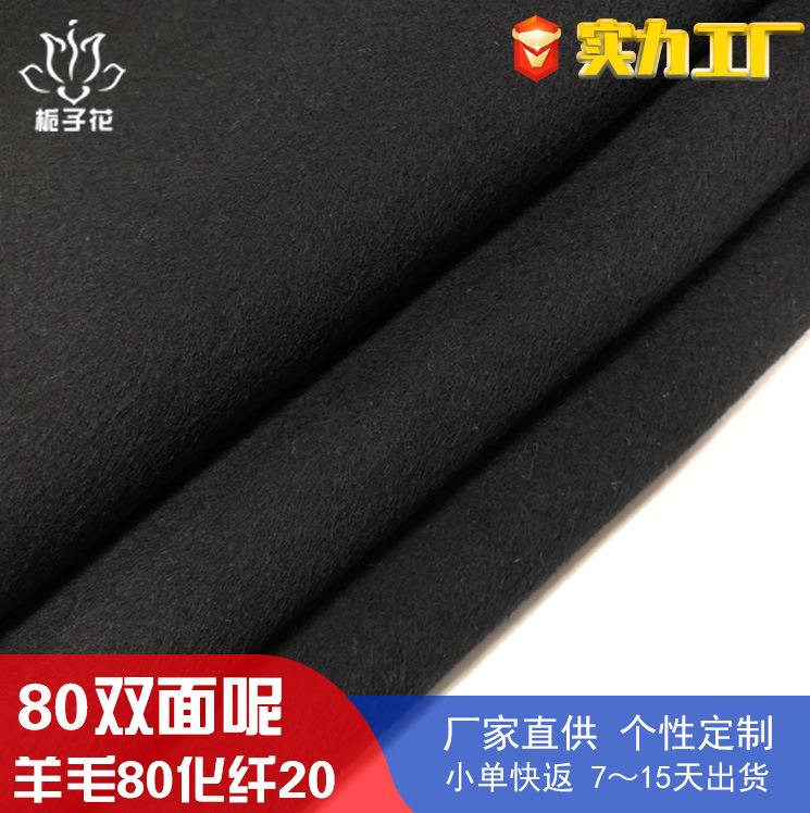 黒80% 両面ウールコート生地卸売り秋冬厚手両面尼材粗い工場源現物