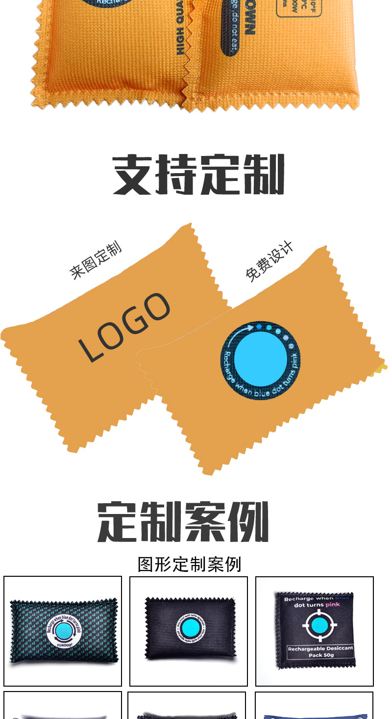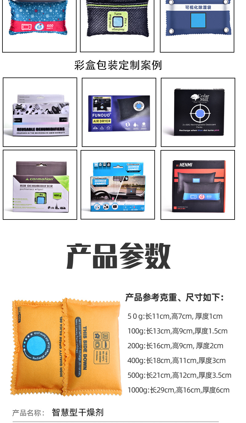 智慧型变色硅胶开窗干燥剂去除湿回南天车载专用除湿袋亚马逊同款