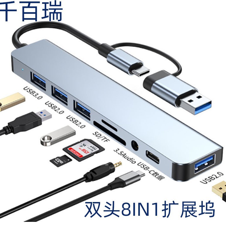 クロスボーダーusb type c拡張ドックhub八合一ノートタブレット携帯電話変換器usbハブ