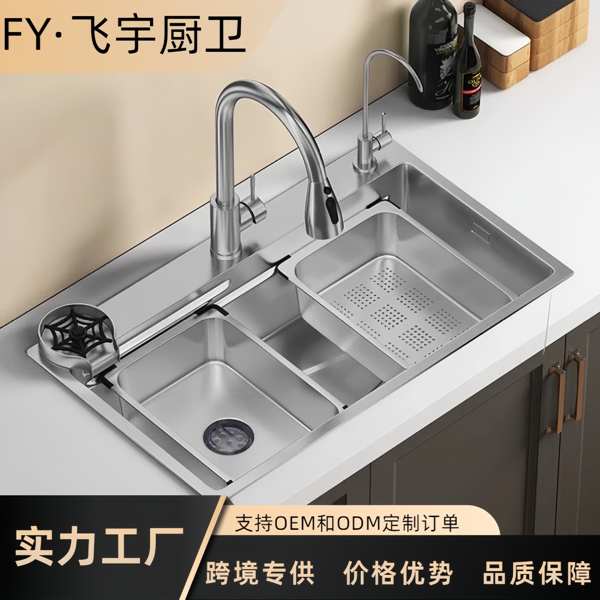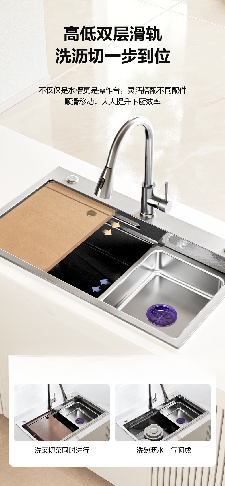 台所多機能洗面台クジラ滝水槽ステンレス大単槽家庭用洗面池