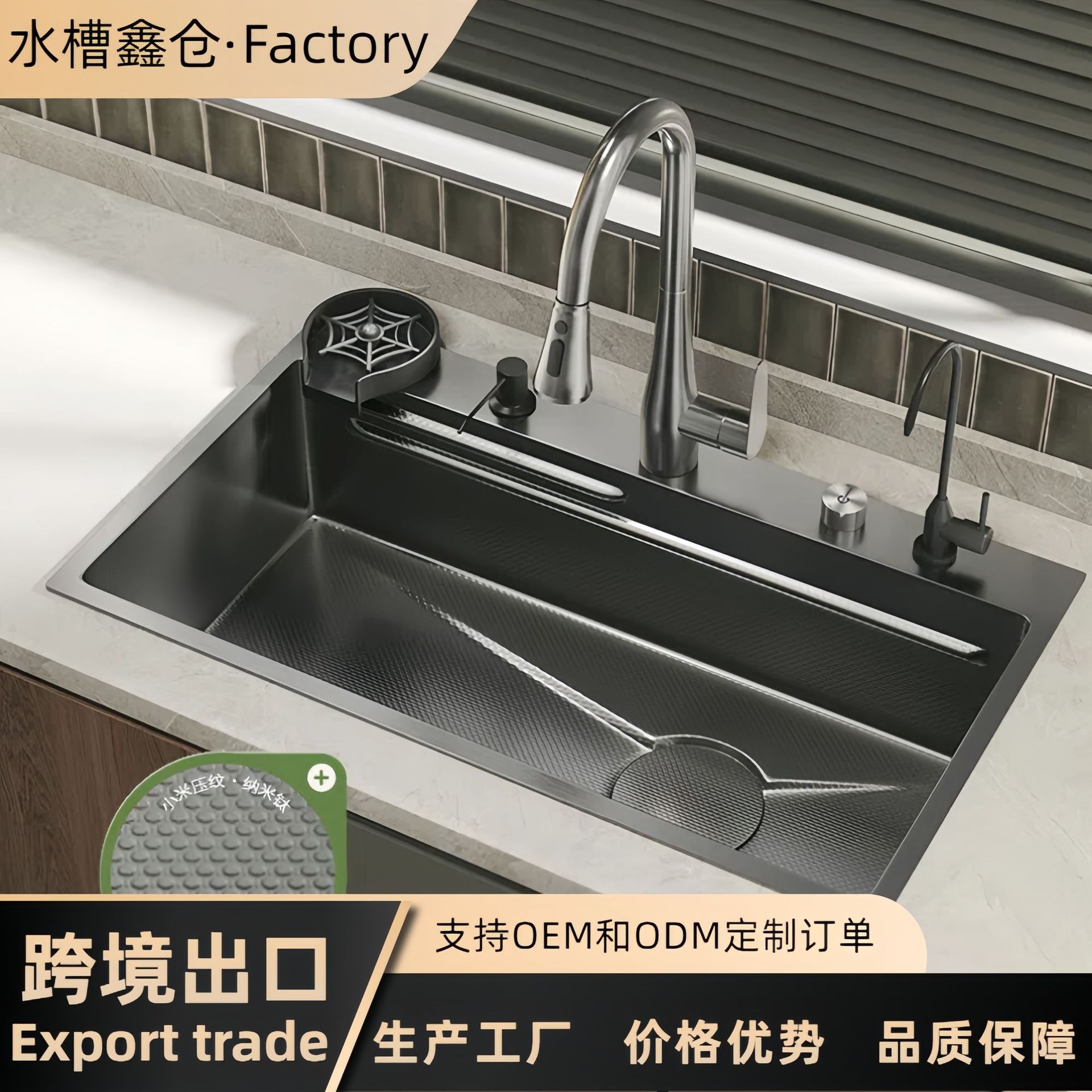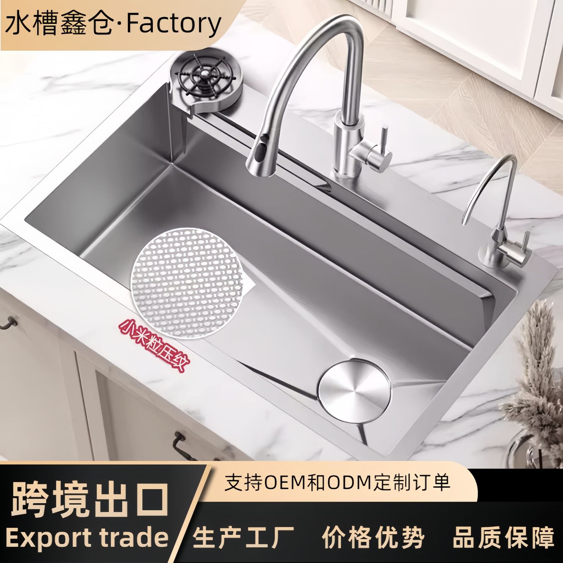 小米粒集渣加厚厨房水槽不锈钢大单槽米粒压纹家用洗菜盆台中台下