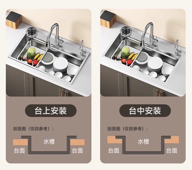加厚4MM集渣压纹水槽大单槽家用不锈钢厨房洗菜盆洗碗池台上中下